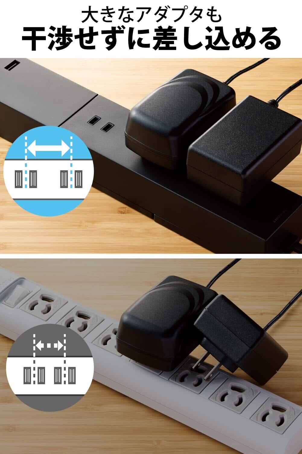 ■AC差込口の間隔距離を57mmとすることで、大きなACアダプターなどを利用する際も隣のAC差込口に干渉しにくい設計となっています。