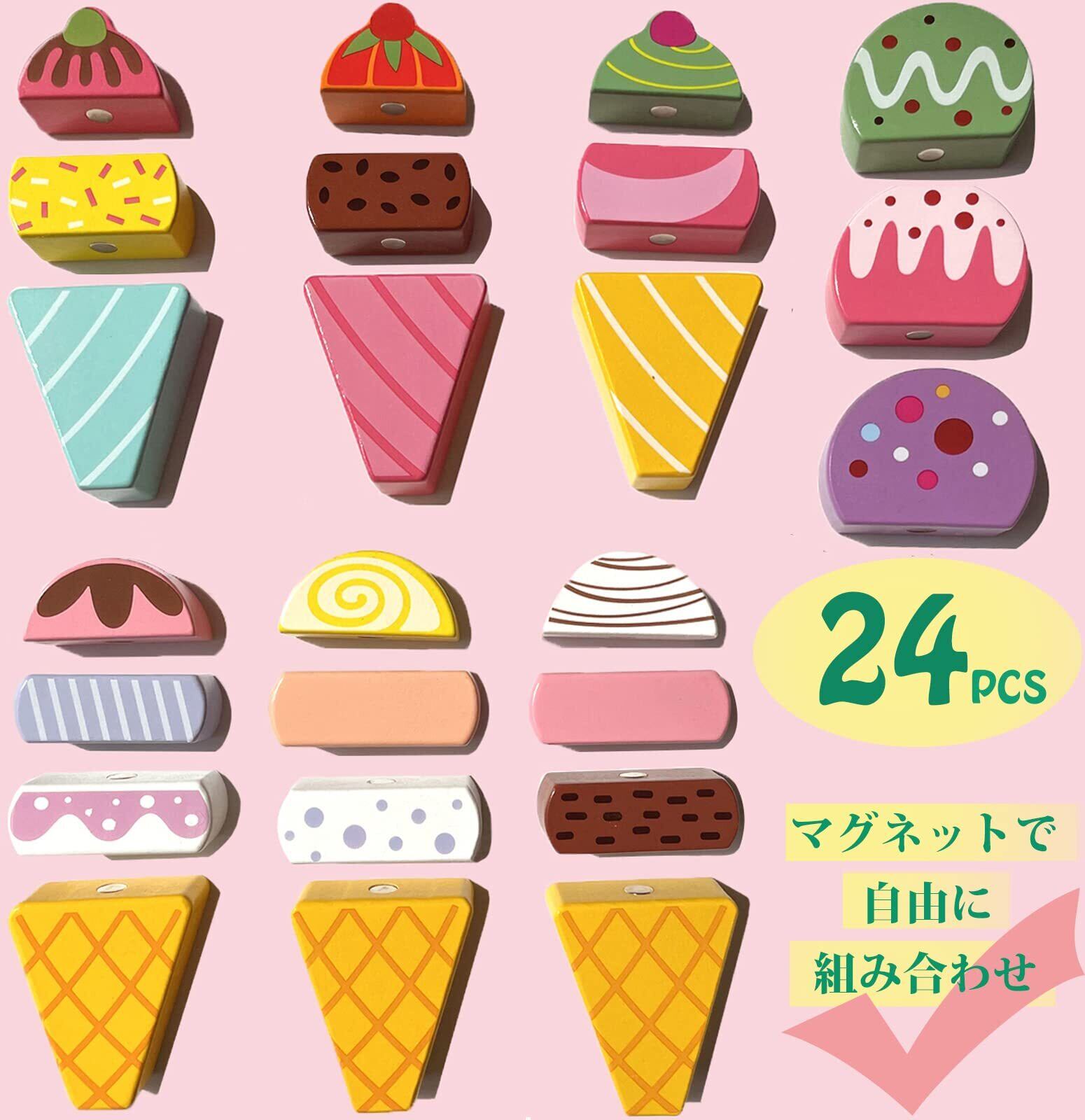 Homehalo おままごとセット 木製おもちゃ モンテッソーリ 玩具 アイスクリームセット 木の玩具 おもしろい はめこみ 形合わせ 知育玩具 おもちゃ おままごとキッチン マグネット 自由に組み合わせ 子供 女の子 男の子 プレゼント 子供の日 誕生日プレゼント 入園祝い クリスマスプレゼント