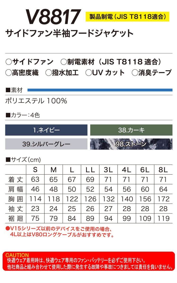 村上被服の快適ウェア V8817サイドファンシリーズ