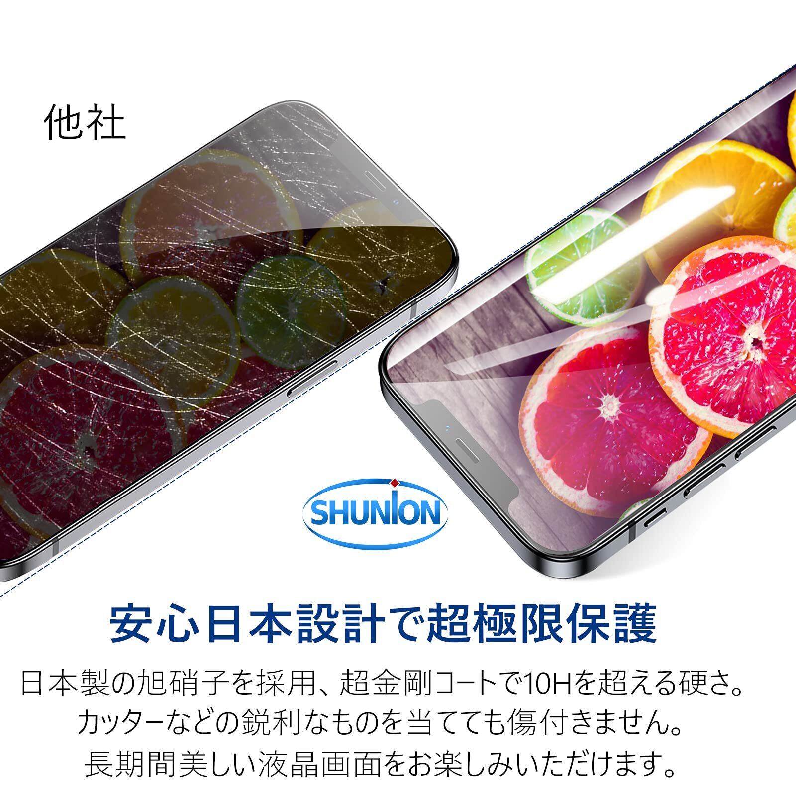 【透明度拔群!撥水撥油、指紋防止】:SHUNIONのいphone12PRO 強化ガラスフィルム 高透過率で、iPhone元々の画質が損なわず、付いていることを忘れるくらい透明度をもっています。更に、蒸着材料を加熱し昇華して、フィルムの表面に疎油性の指紋防止コーティングを形成します。従来の保護ガラスフィルムより汚れ防止効果は3倍長く持続し、付着した汚れも簡単に拭き取ることができます。