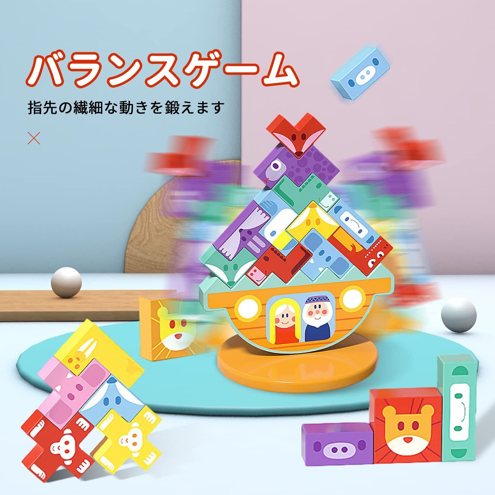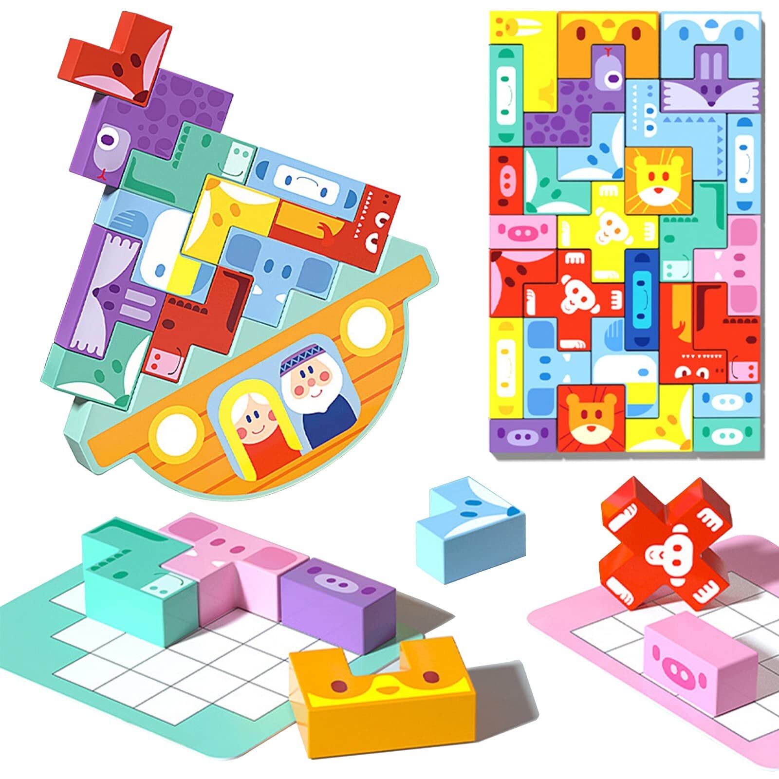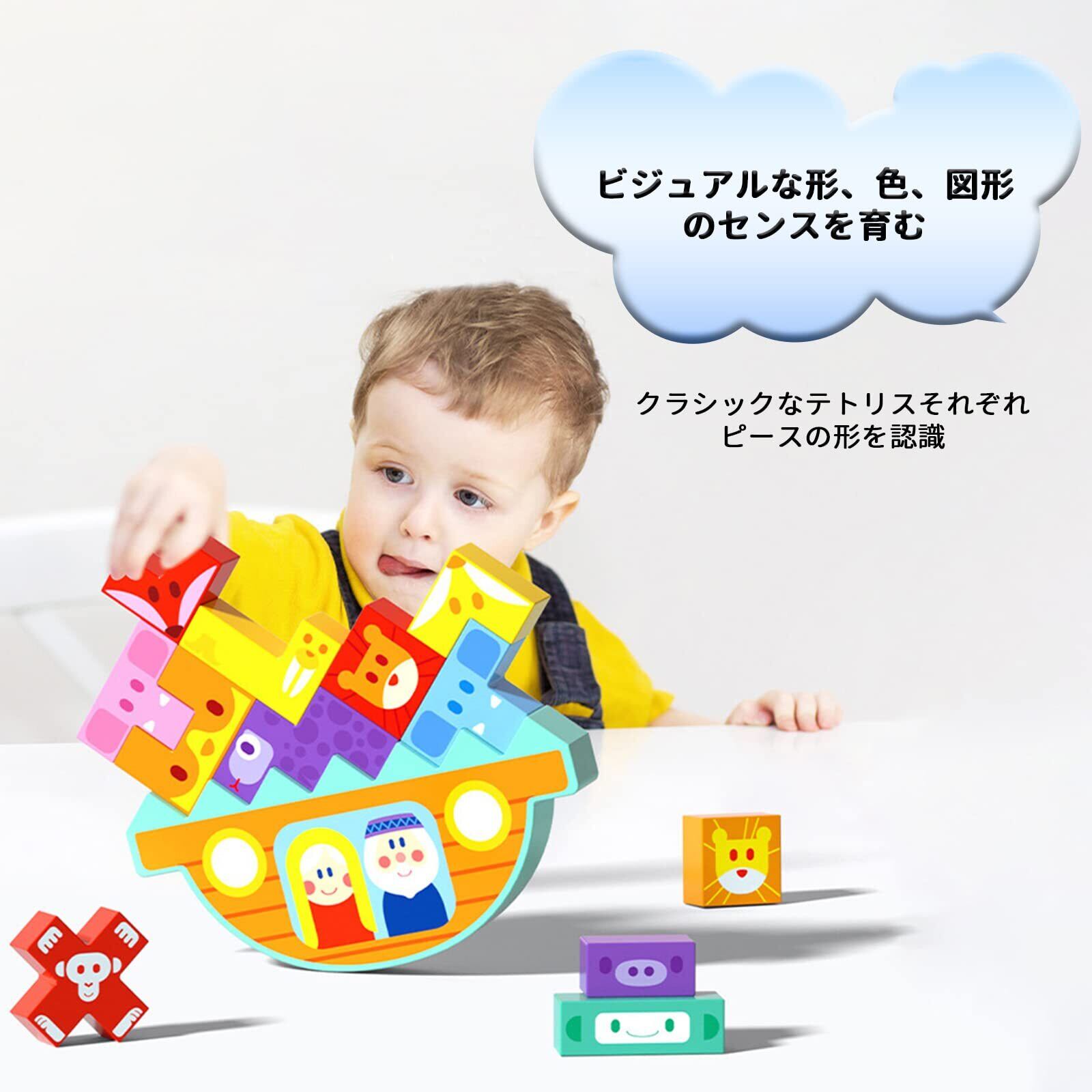 OTONOPI 木製テトリス バランスゲーム 木製パズル 積み木 立体パズル 形合わせ 木製おもちゃ 可愛い動物絵柄 子供 脳トレ 知育玩具 ボードゲーム モンテッソーリ教育法 女の子 男の子 お誕生日 クリスマス プレゼント 6歳以上