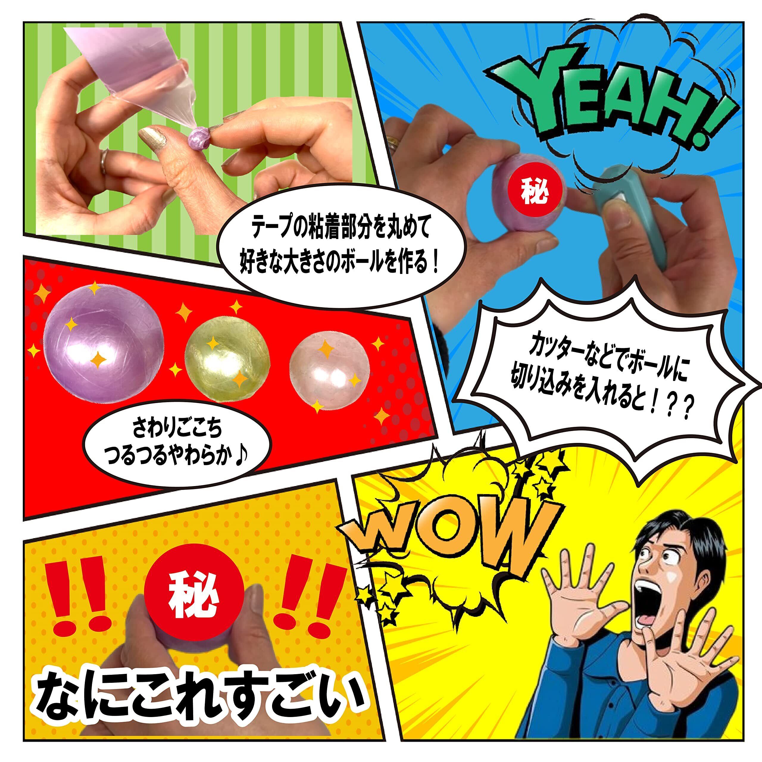 【テープボールのつくりかた説明書付き】 ・わかりやすい日本語の説明書つき!当店スタッフが作ったオリジナル説明書です。 ・ボールが10円玉くらいの大きさになるまでは巻くことに慣れず、 イライラしてしまうこともあるかもしれませんがボールが大きくなってくるにつれて 「もっときれいに作ろう」「ボールが大きくなってきて楽しい」と楽しくなってきます ボールが大きくなってくると必ず楽しくなってきます!!! 最初はあきらめないでひたすらテープを巻いていってください!