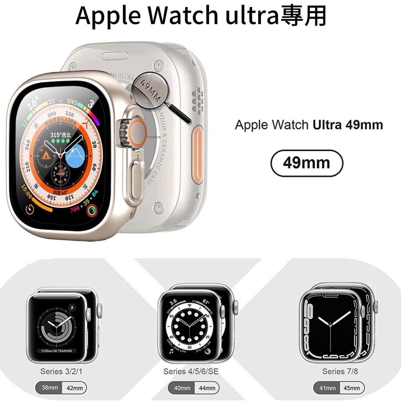 TALENANA Apple Watch Ultra/Ultra2 用 ケース 49mm アップルウォッチシリーズUltra/Ultra2 用 保護カバー ガラスフィルム 一体型 PC素材 タッチ感良好 アップルウォッチUltra/Ultra2用 カバー 全面保護 高透過率 指紋防止 衝撃吸収 (Ultra/Ultra2,49mm,スターライト)