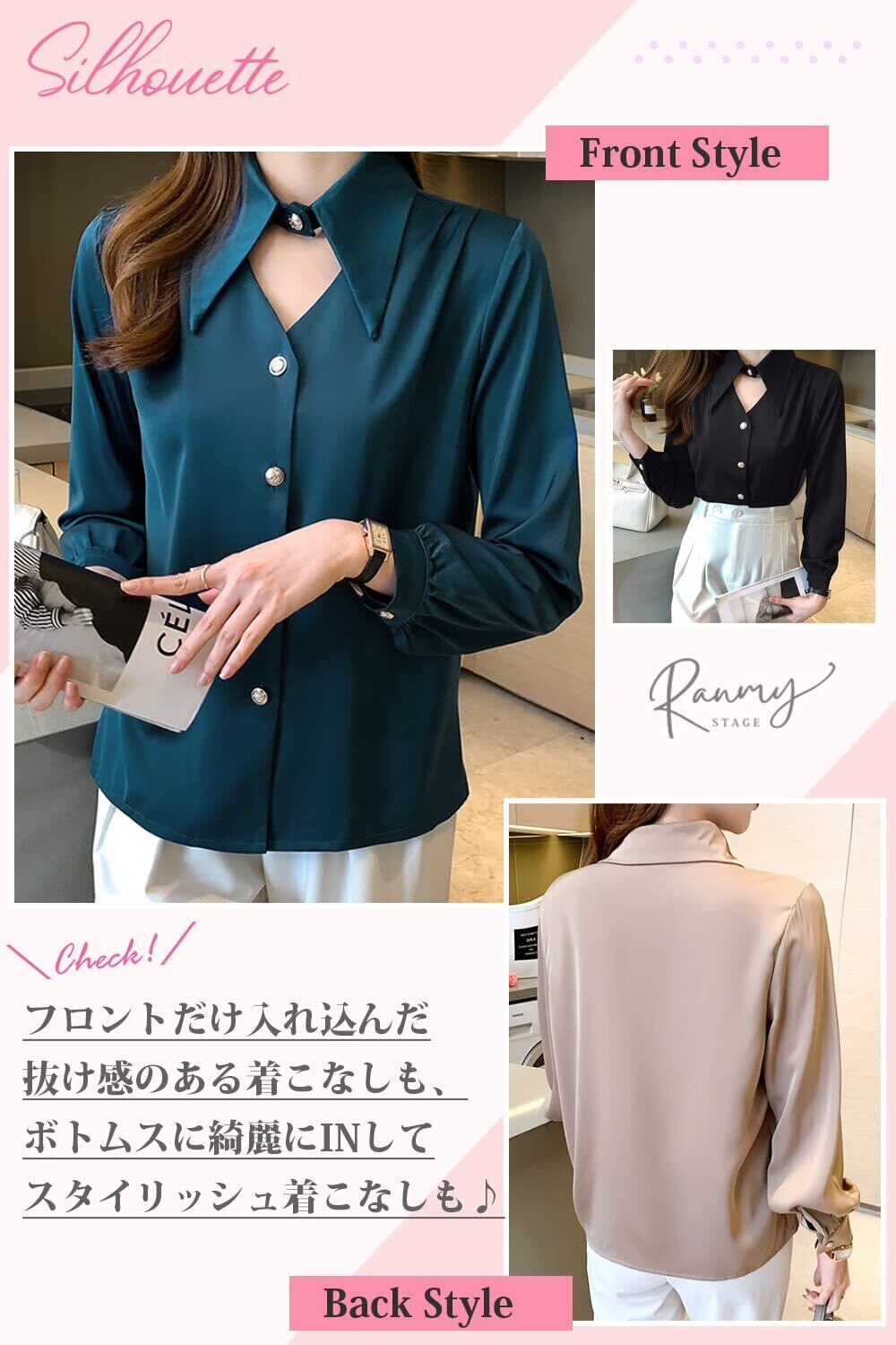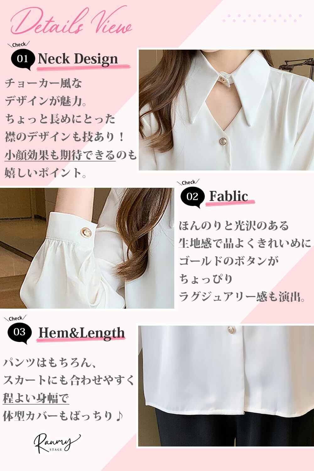 [Ranmy Stage] 【オトナ可愛い胸元カットアウト】 ブラウス レディース 長袖 襟付き オフィスカジュアル きれいめ