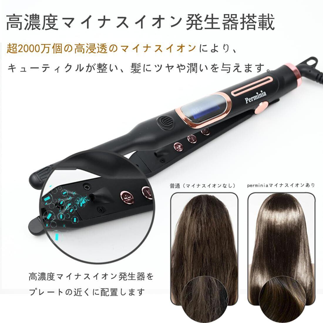 【マイナスイオン発生器搭載】まとまり・ツヤ・潤いを生み出す高濃度マイナスイオン発生器をプレートの近くに配置、高濃度マイナスイオンにより、キューティクルが整い、髪にツヤや潤いを与えます、髪のダメージを抑えながらストレート&カールスタイルにすることができます。