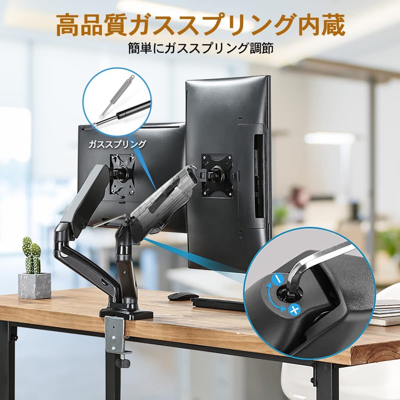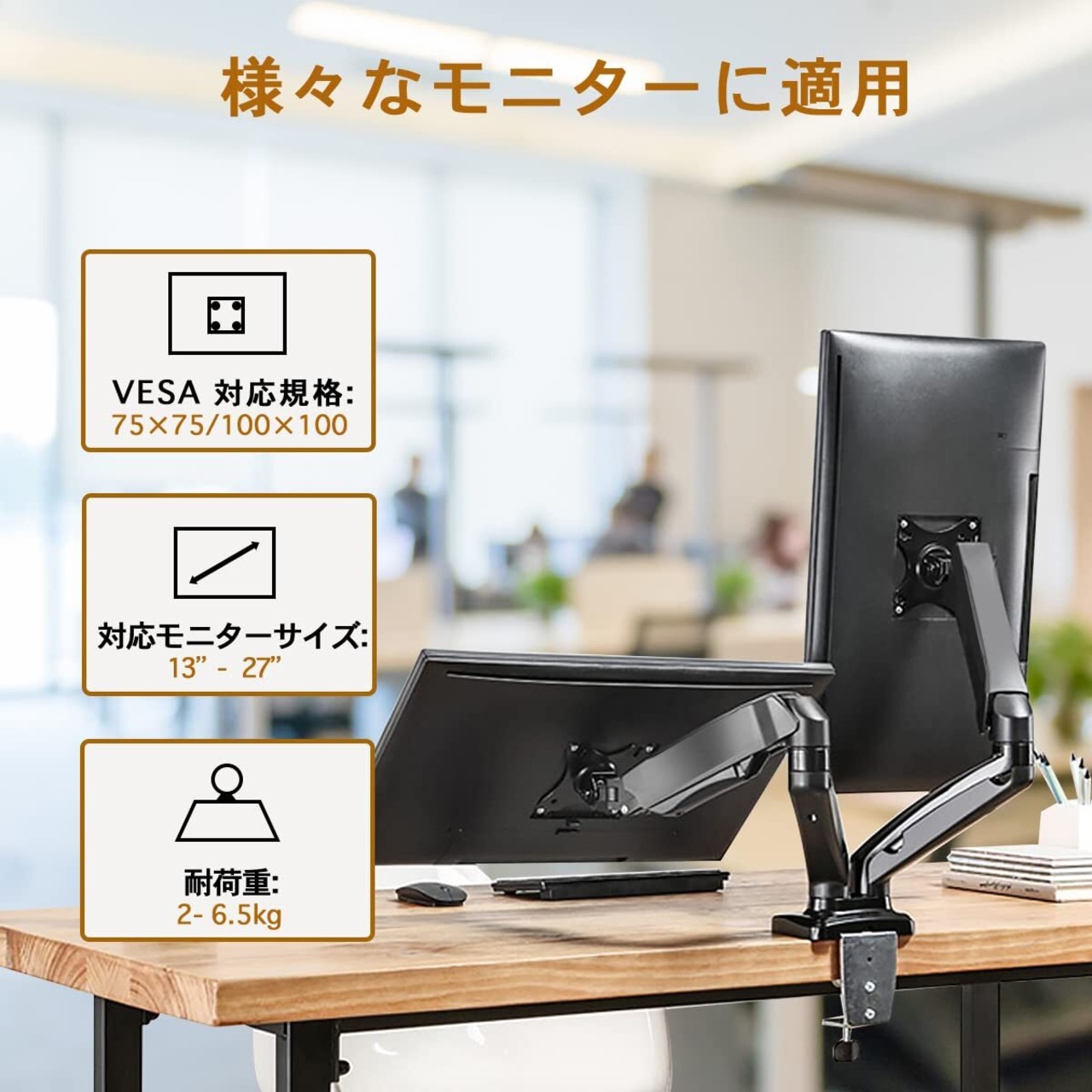 モニター アーム PC デュアル ディスプレイ アーム 13~27インチ対応 耐荷重2-6.5kg ガススプリング式 ガス圧式 VESA100*100 多角度調節 Falala 日本語取扱説明書付き