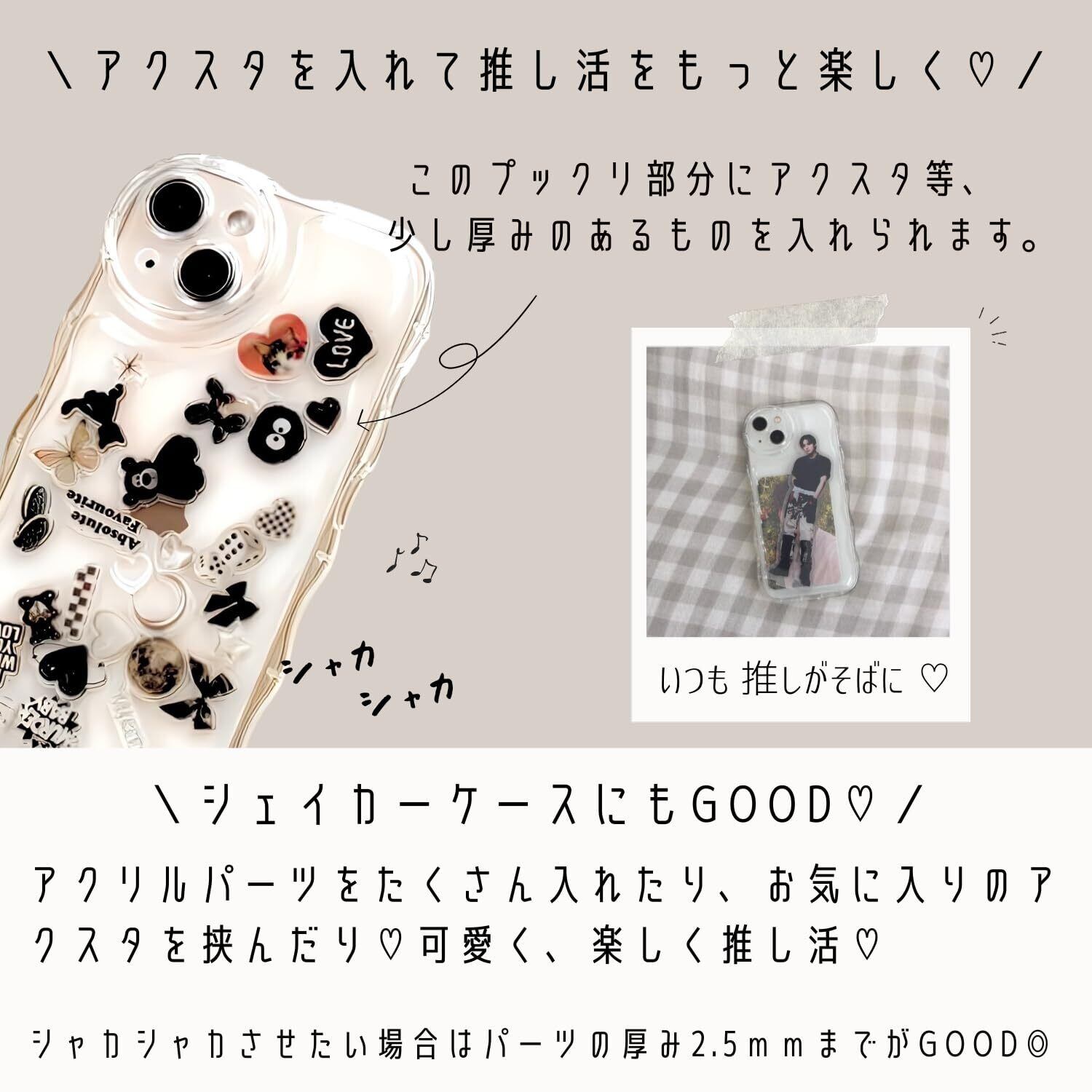 saymi's クリア ウェーブ おしゃれ 韓国 iPhone14 ケース アクスタ収納 推し活にぴったり 手にフィット 透明 可愛い シンプル (iPhone14)
