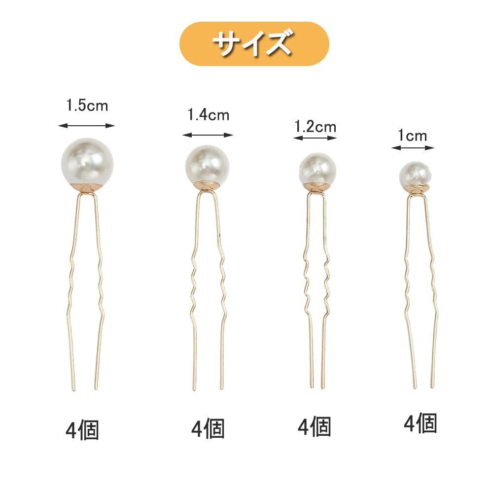 DFsucces パール 髪飾り パールピン Uピン ヘアピン 髪留め 前髪 ヘアクリップ 普段使い 和装 撮影 結婚式 ウェディング パーティー 花嫁などの髪飾り用 (16, ゴールド)