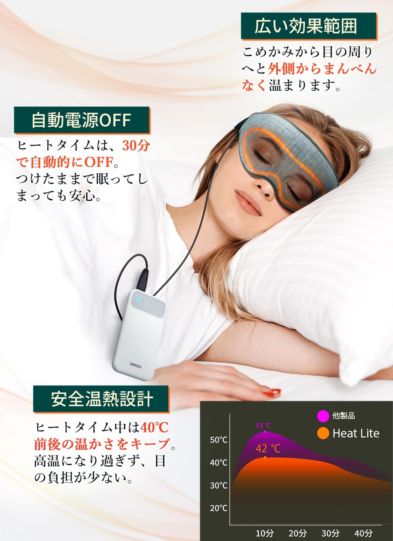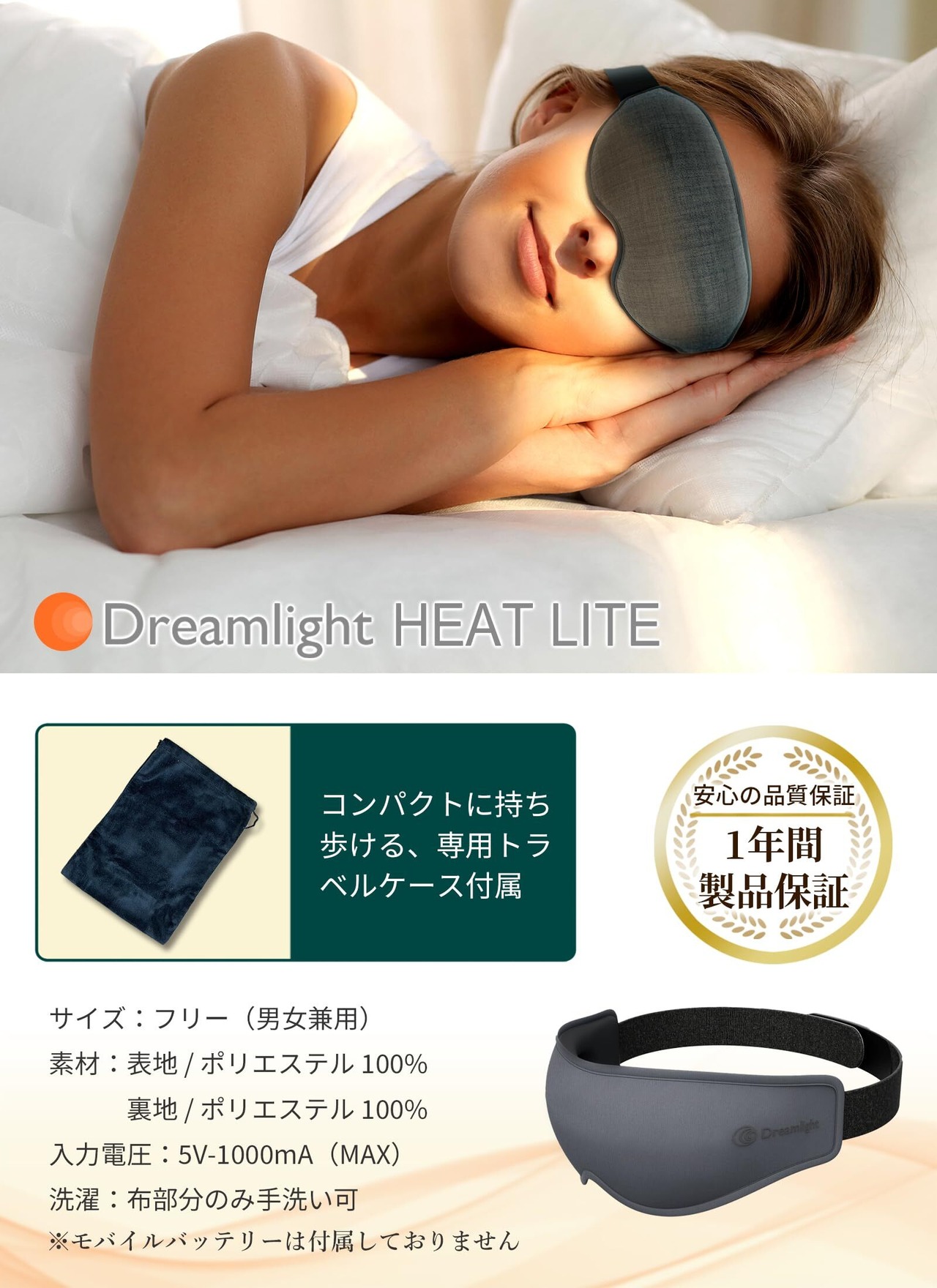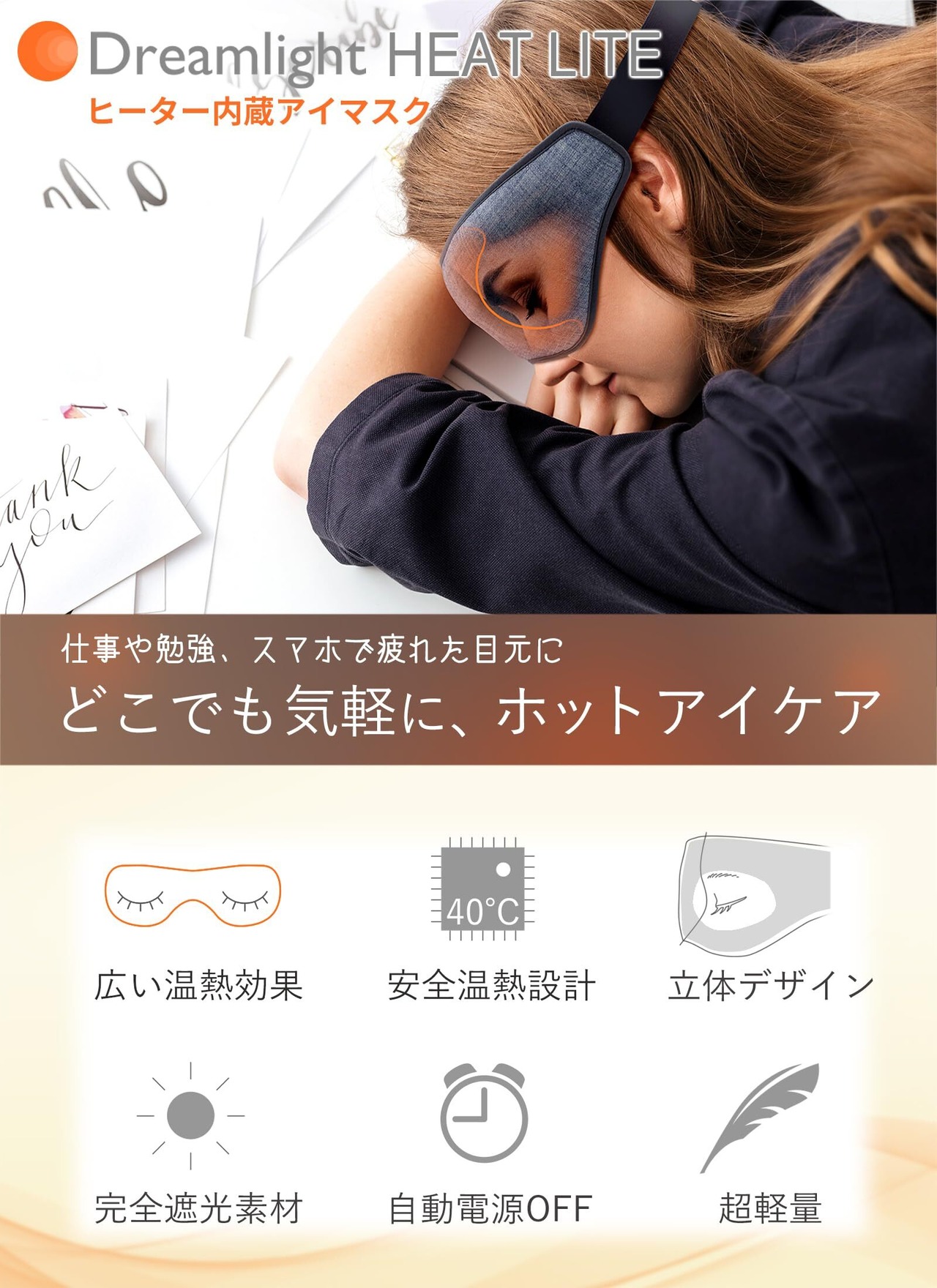 ポータブルホットアイマスク ドリームライトヒートライト Dreamlight HEAT LITE ヒーター内蔵 USB給電 アイケア 疲れ目 眼精疲労 軽量 まぶたにに直接触れない 3Dホール構造