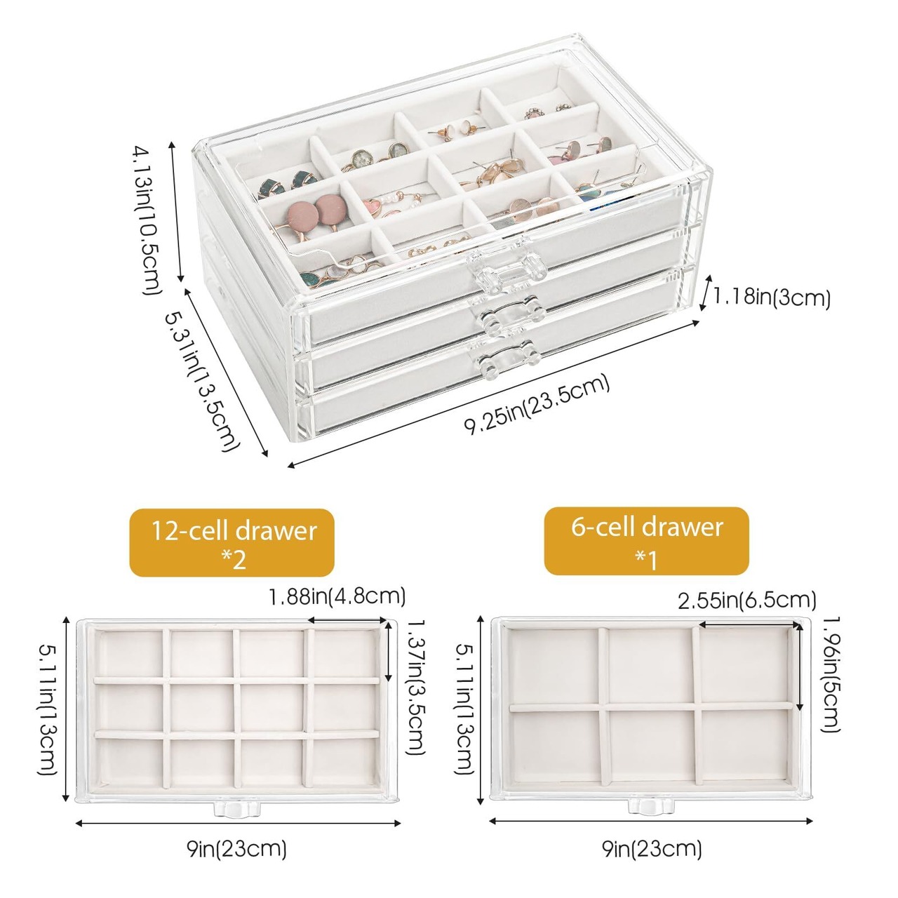 ProCase ジュエリーボックス 3層 ジュエリー収納 透明アクリル 引き出し 女性 女の子 宝石箱 アクセサリーケース オーガナイザー 小物入れ プレゼント-ウオームホワイト
