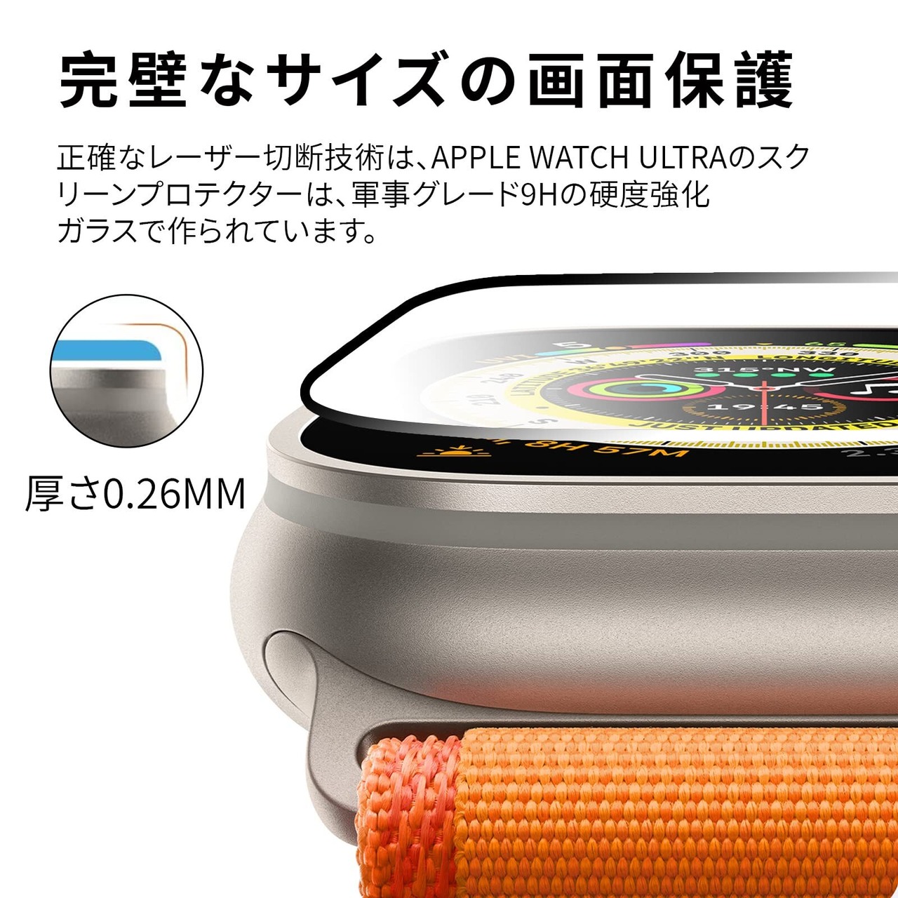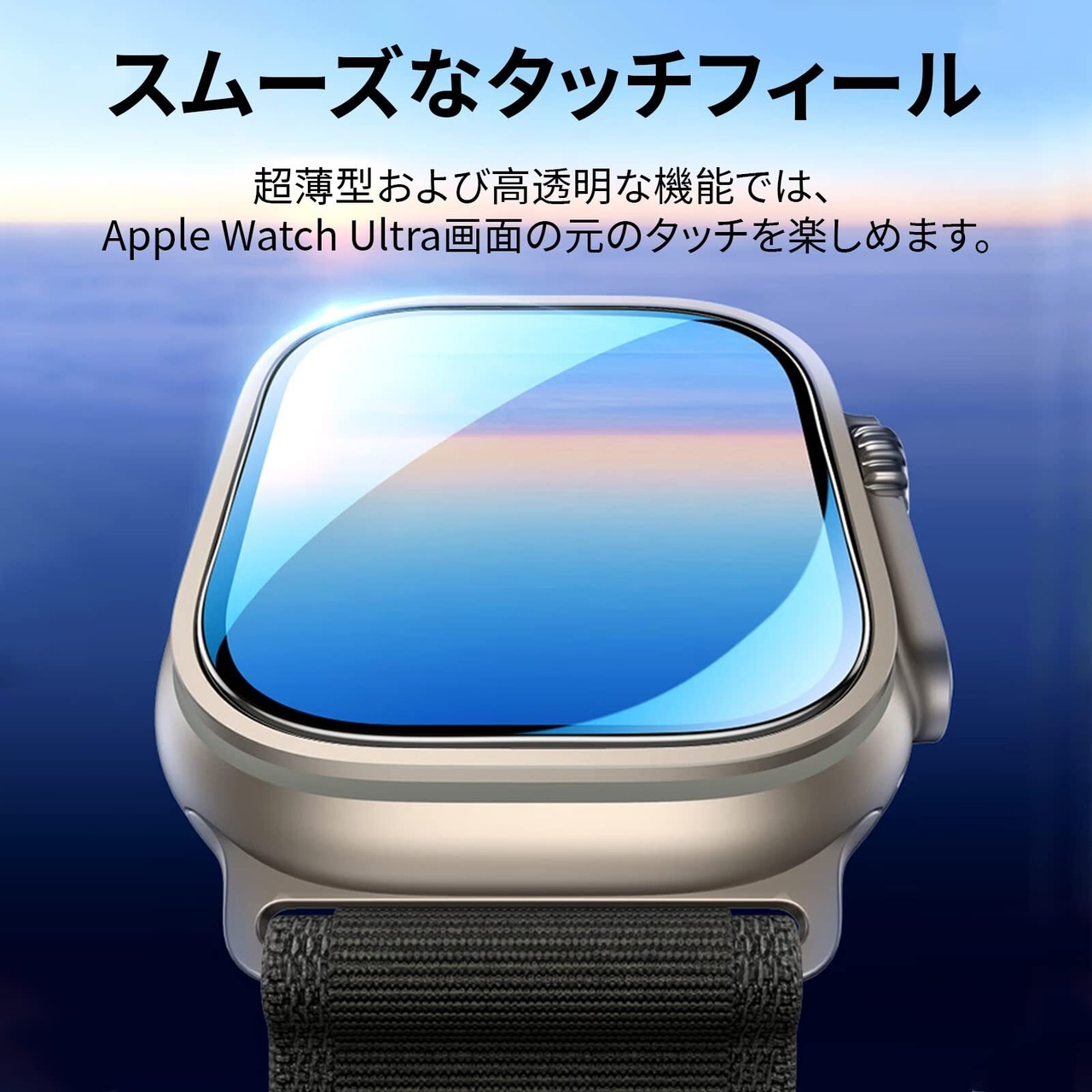 高透過率: 超精密な加工が施されていて、液晶の光る部分が黒縁取りに被らない仕様です。透過率は99%超えるため、画面の視認性とタッチ感が優れ、液晶画面を鮮やかに彩ります 、Apple Watch本来の美しさを損ないません。