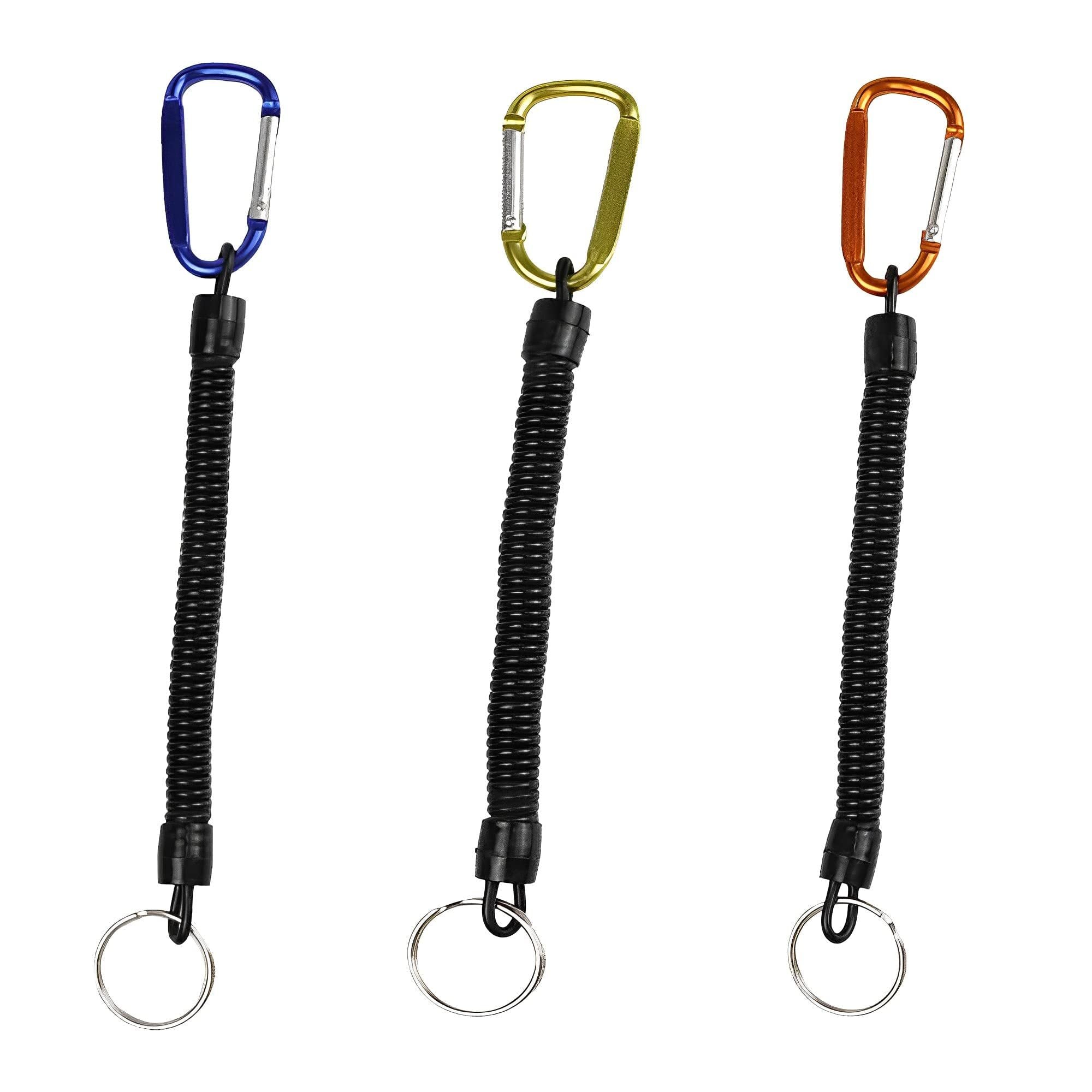 [Schicksal.] 伸びるカラビナ3本セット ストラップ キーリール キーチェーン リールキーホルダー リールキーホルダー コードストラップ 80cm