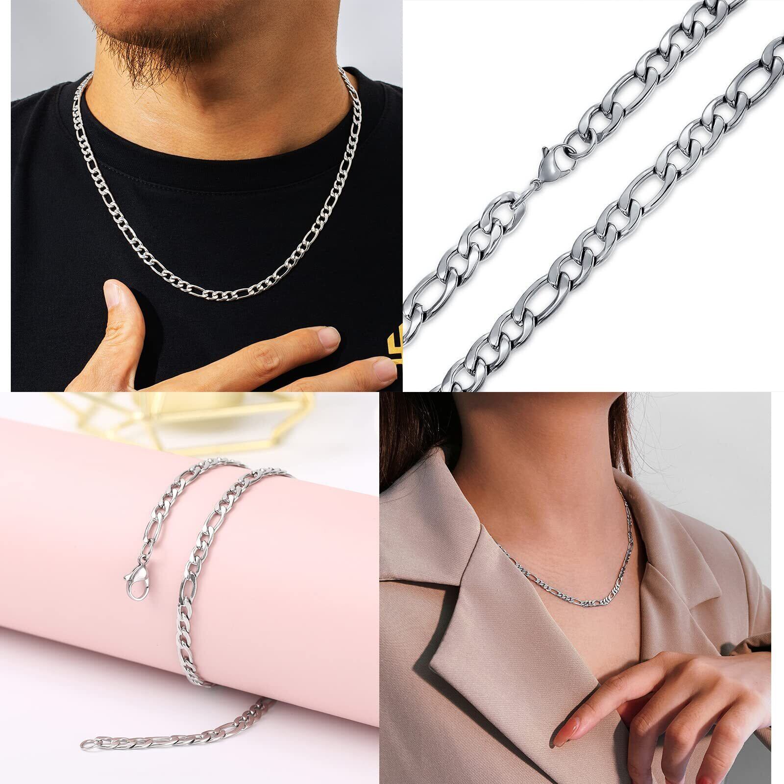 Yoursfs フィガロチェーン ネックレス メンズ ステンレス 3mm-7mm 50cm-60cm ロング 喜平チェーン ヒップホップ アクセサリー プレゼント