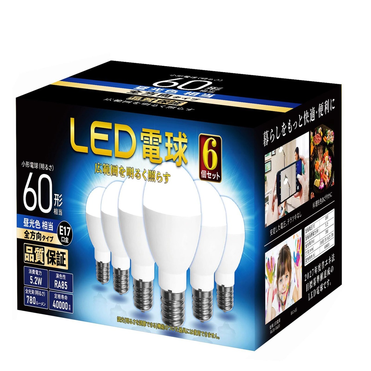 ミニクリプトン型 LED電球 E17口金 電球60形相当 昼光色相当 広配光タイプ 断熱材施工器具 密閉形器具対応(昼光色 6個入り)