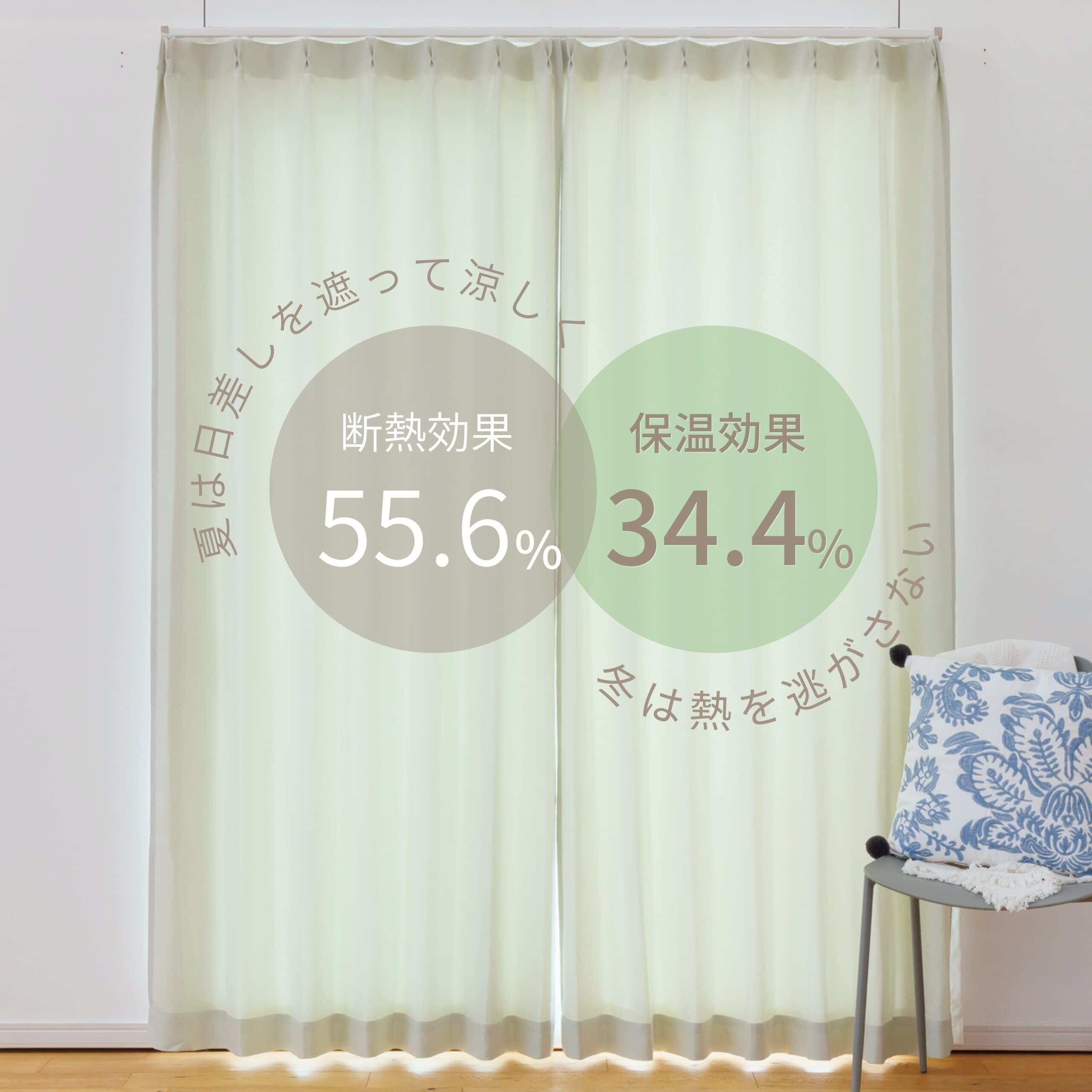 断熱効果55.6%で夏の日差しを遮り、保温効果34.4%で冬は室内の温かさをキープ。省エネ対策にもぴったり!!