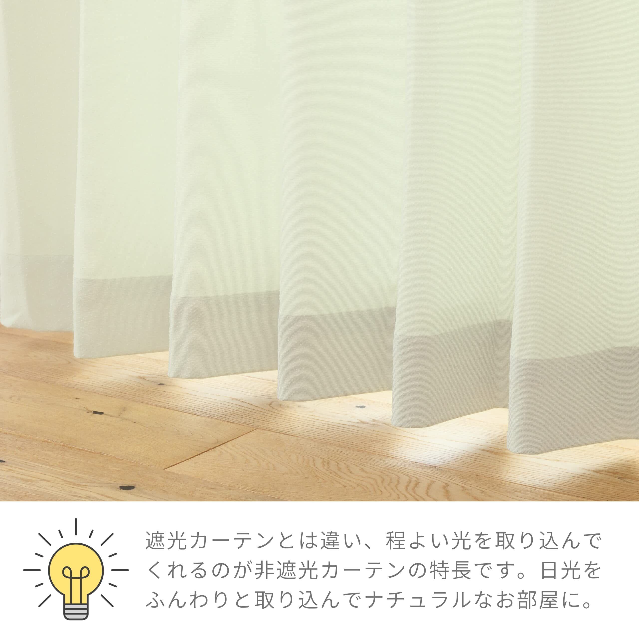 【非遮光】非遮光カーテンなので、強い日差しを遮り光を室内にやわらかく取り入れます。朝日と共にすっきり目覚めたい方におすすめです。