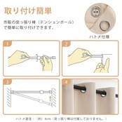 【仕様】:フックなどは不要です。ハトメに一般的な突っ張り棒を通すだけで簡単に設置できるのれん。使用しない時はたたんでおけますので通り抜けの邪魔になりません。