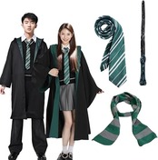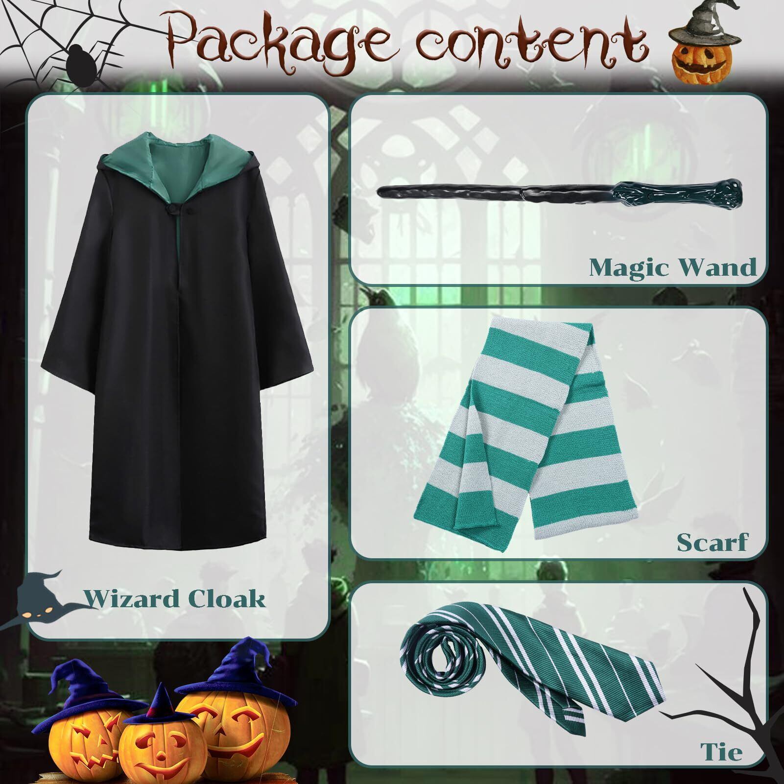 [Formemory] ハロウィン コスチューム コンプリート ハロウィン コスプレ 衣装 ローブ ネクタイ スカーフ 魔法の杖(音を立てて光を放つ) 4点セット 緑 グリーン 道具 7つサイズ コスチューム ローブ 男女共用 ネクタイ 魔法の杖 コスプレ衣装