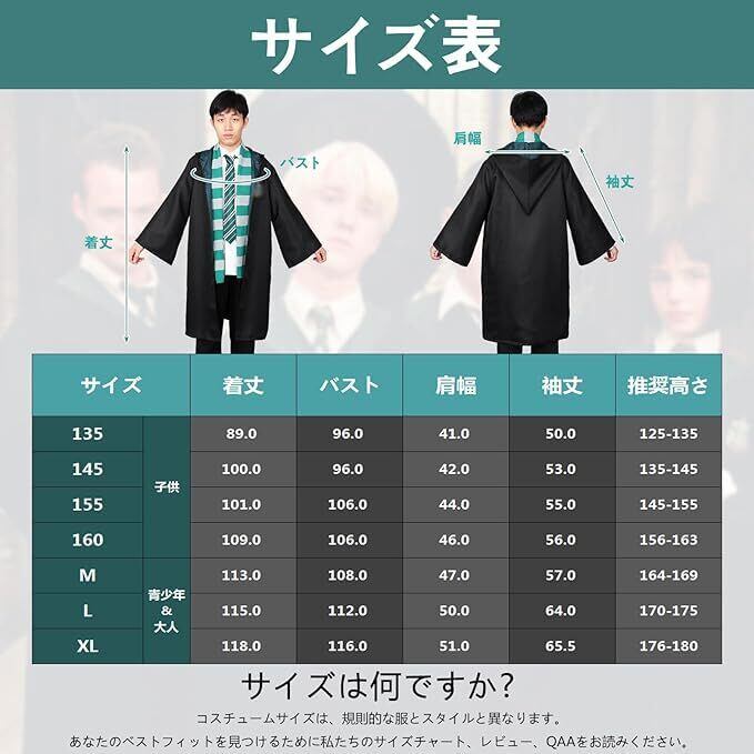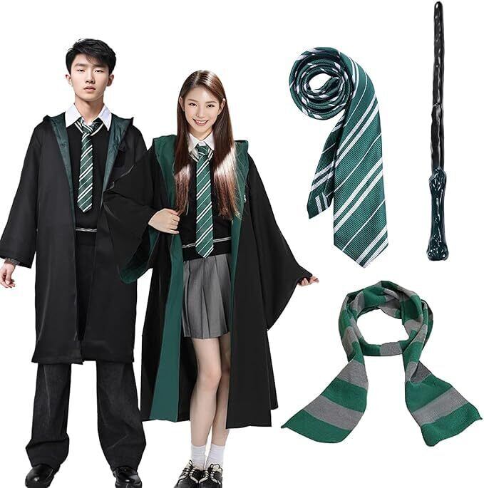 【セット内容】:ローブ、ネクタイ、スカーフ、魔法の杖(魔法の棒は音を立てて光を放つ)4点セットです、すべての装備が揃っています、原作を忠実に再現されたデザインになっております。