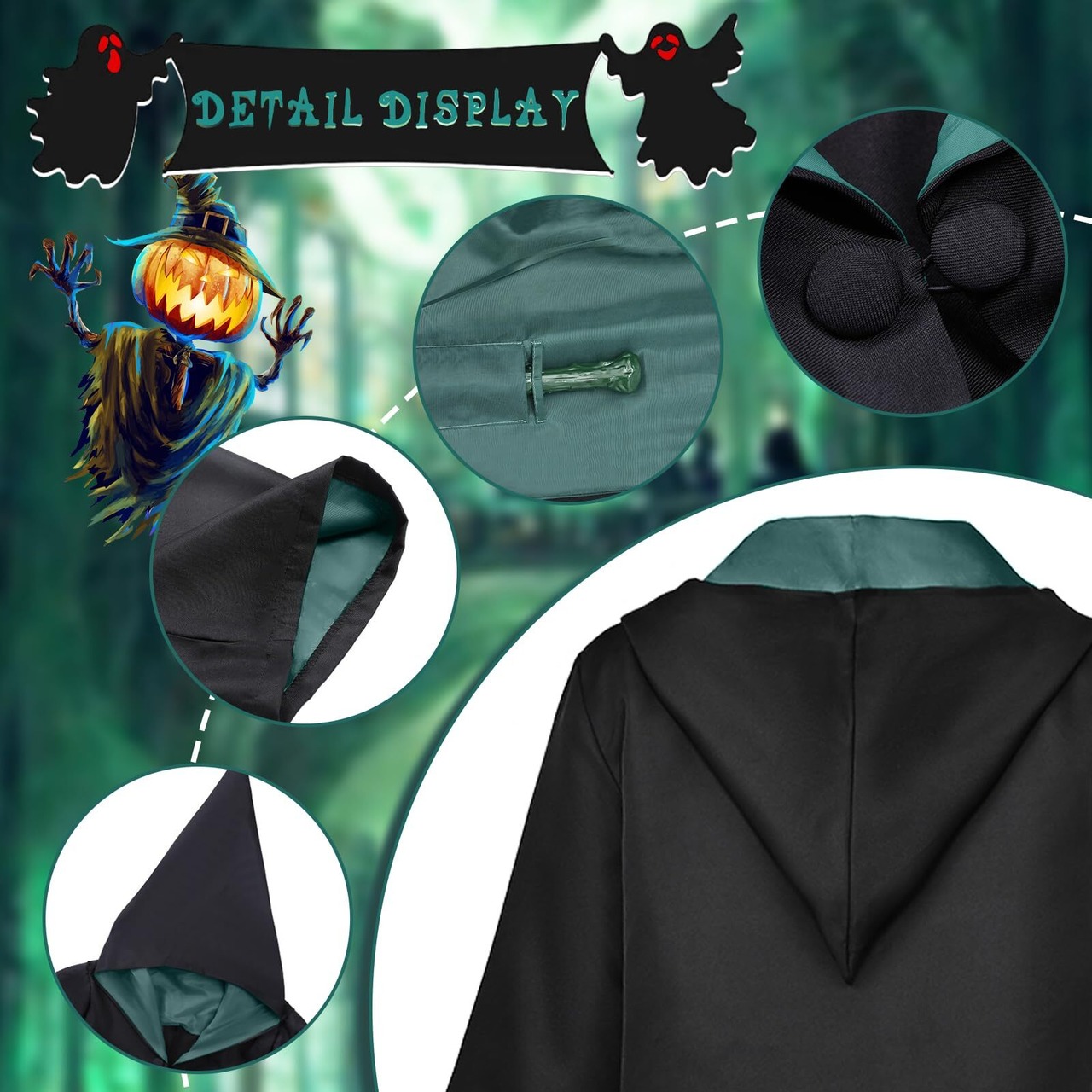 [Formemory] ハロウィン コスチューム コンプリート ハロウィン コスプレ 衣装 ローブ ネクタイ スカーフ 魔法の杖(音を立てて光を放つ) 4点セット 緑 グリーン 道具 7つサイズ コスチューム ローブ 男女共用 ネクタイ 魔法の杖 コスプレ衣装 (大人用 XL)