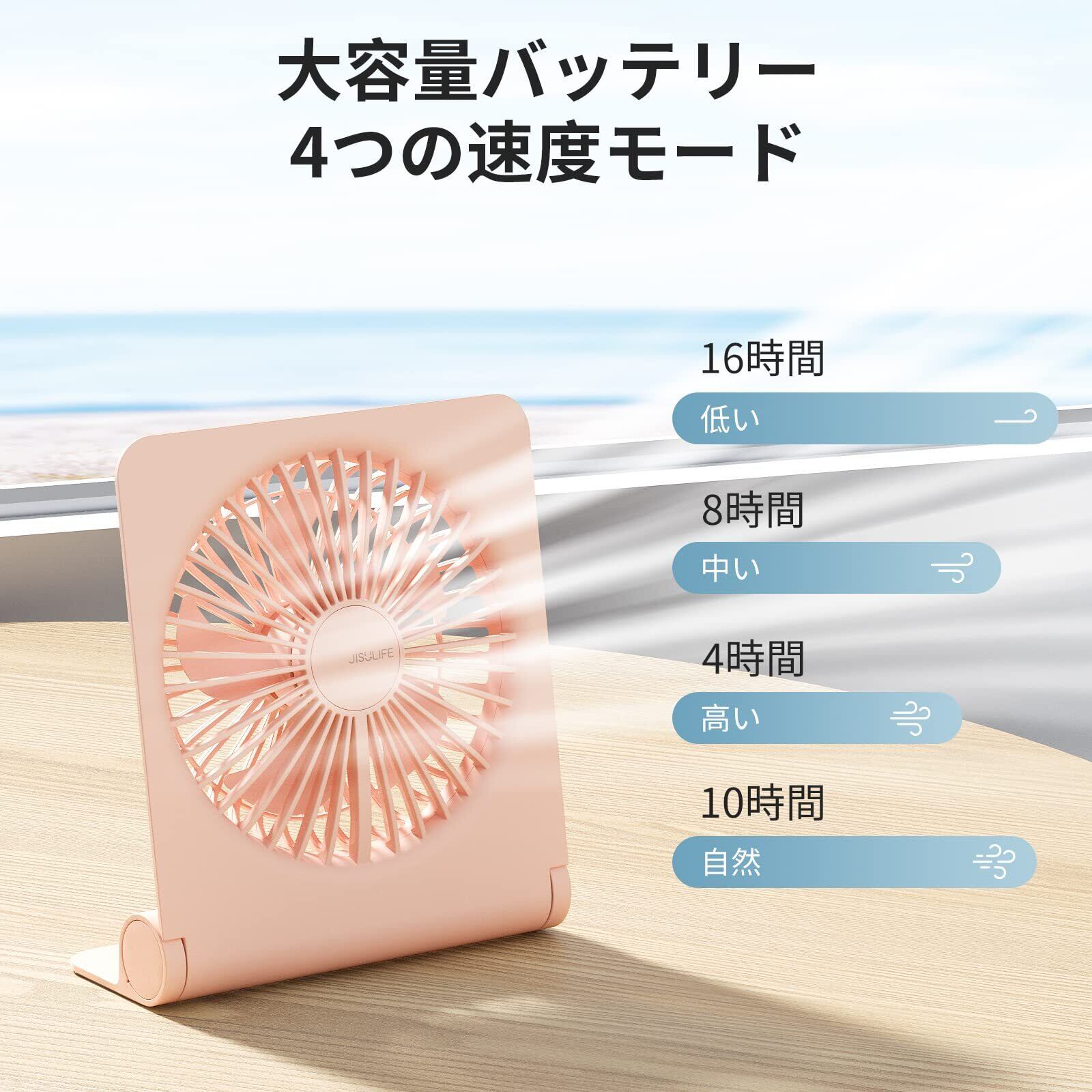 JISULIFE 卓上扇風機 ミニ扇風機 静音 4500mAh大容量バッテリー 16時間連続使用 風量4段階調節 超強風 160°角度調節可能 充電式 USB デスクファン 小型 軽量 熱中症対策(ピンク)