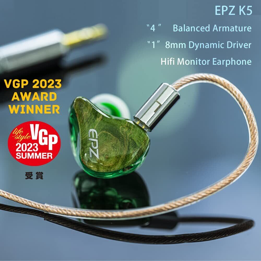 Hifi Kingdom 1DD+4BA EPZ K5 8mmムービングコイルLCP+PUダイヤプフラグム+4バランスドアーマチュアハイブリッドプロフェッショナルHiFiモニタリングイヤホン・イヤホンパネルメープルおよび3D医療用樹脂音響空洞(GREEN)