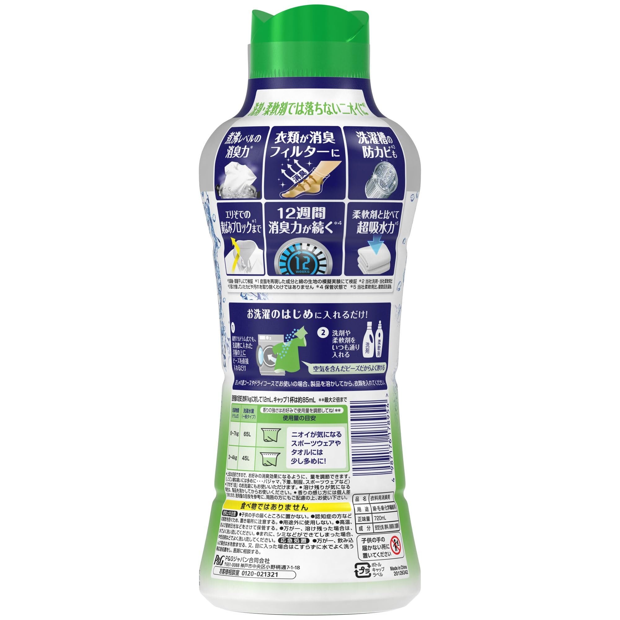レノア 超消臭 煮沸レベル消臭 抗菌ビーズ ウォータリーグリーン 本体 特大 720mL