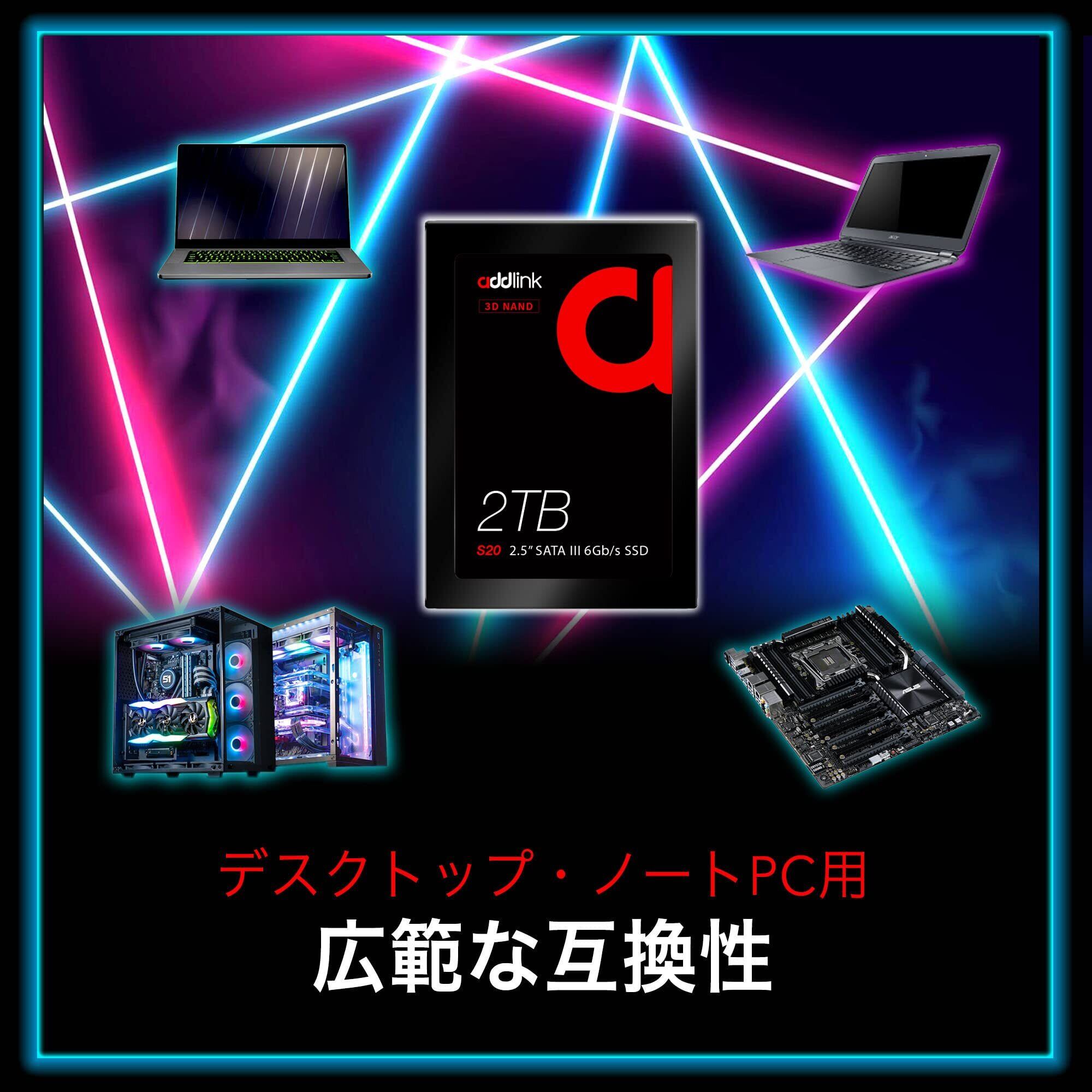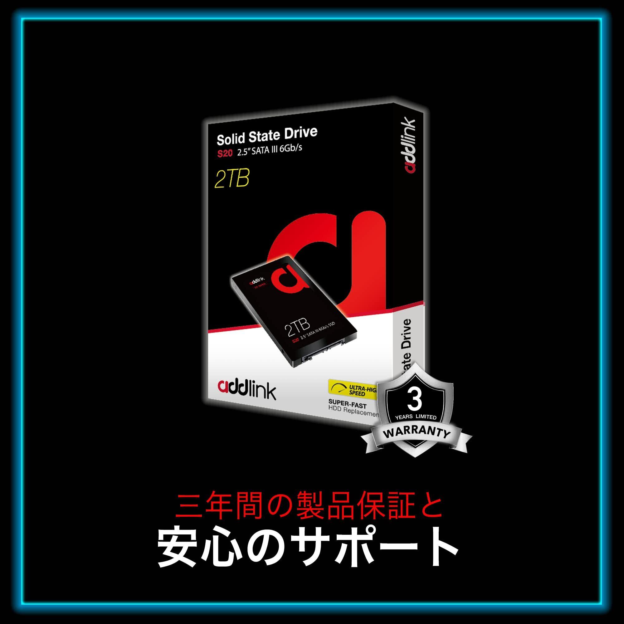 addlink S20 台湾製 内蔵 2TB 2.5インチ 7mm | 読取り最高 550MB/s 書込み最高 500MB/s| 3D NAND採用 SATA III 6Gb/s 2.5インチ | 【PlayStation4 動作確認済】メーカー3年 | ノートパソコン/デスクトップPC対応