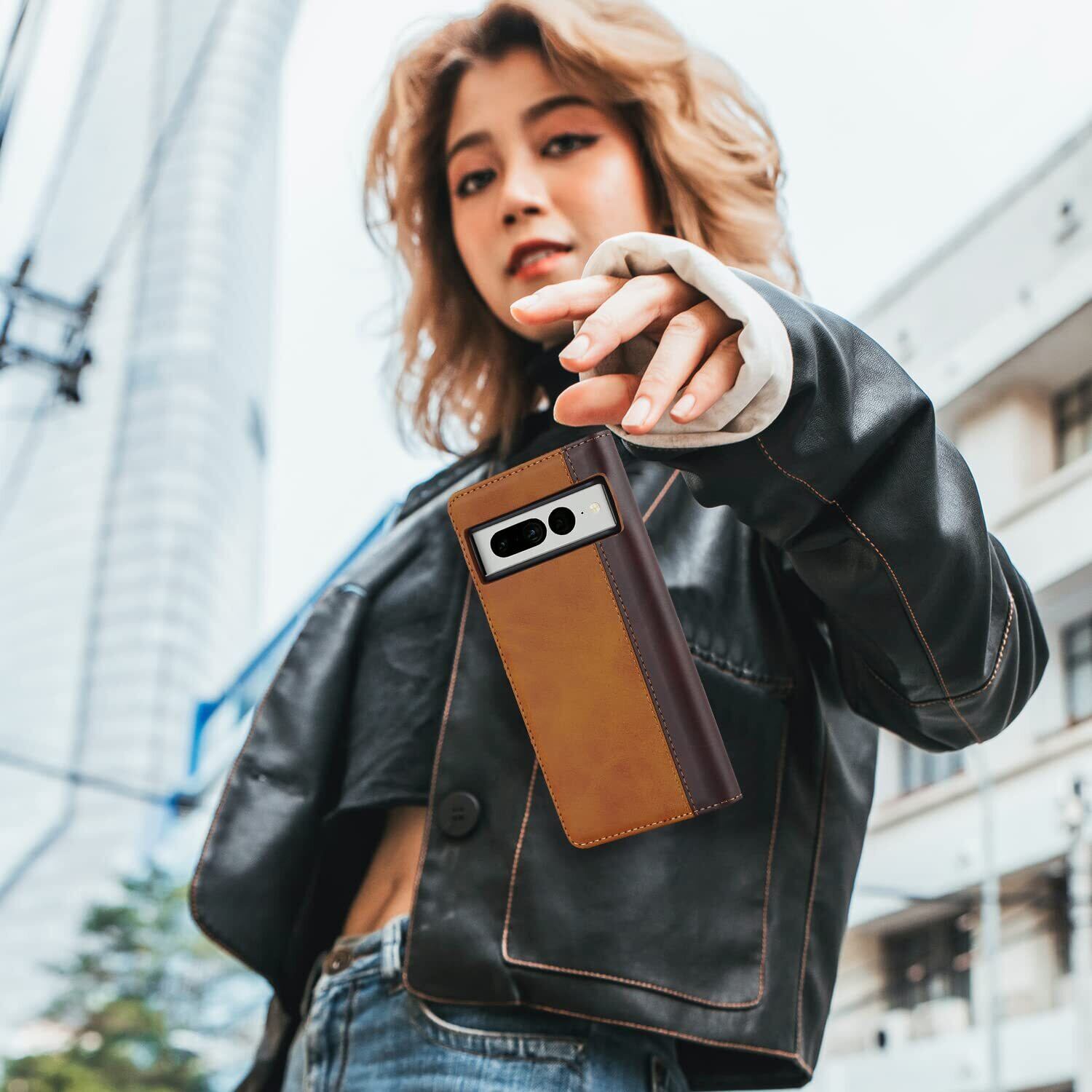 Havaya Google Pixel 7 Pro ケース googleピクセル7プロ ケース pixel 7 pro スマホケース docomo 手帳型 au 耐衝撃 カバー SoftBank マグネット式 カード収納 スタンド機能 レザー -イエロー+ブラウン