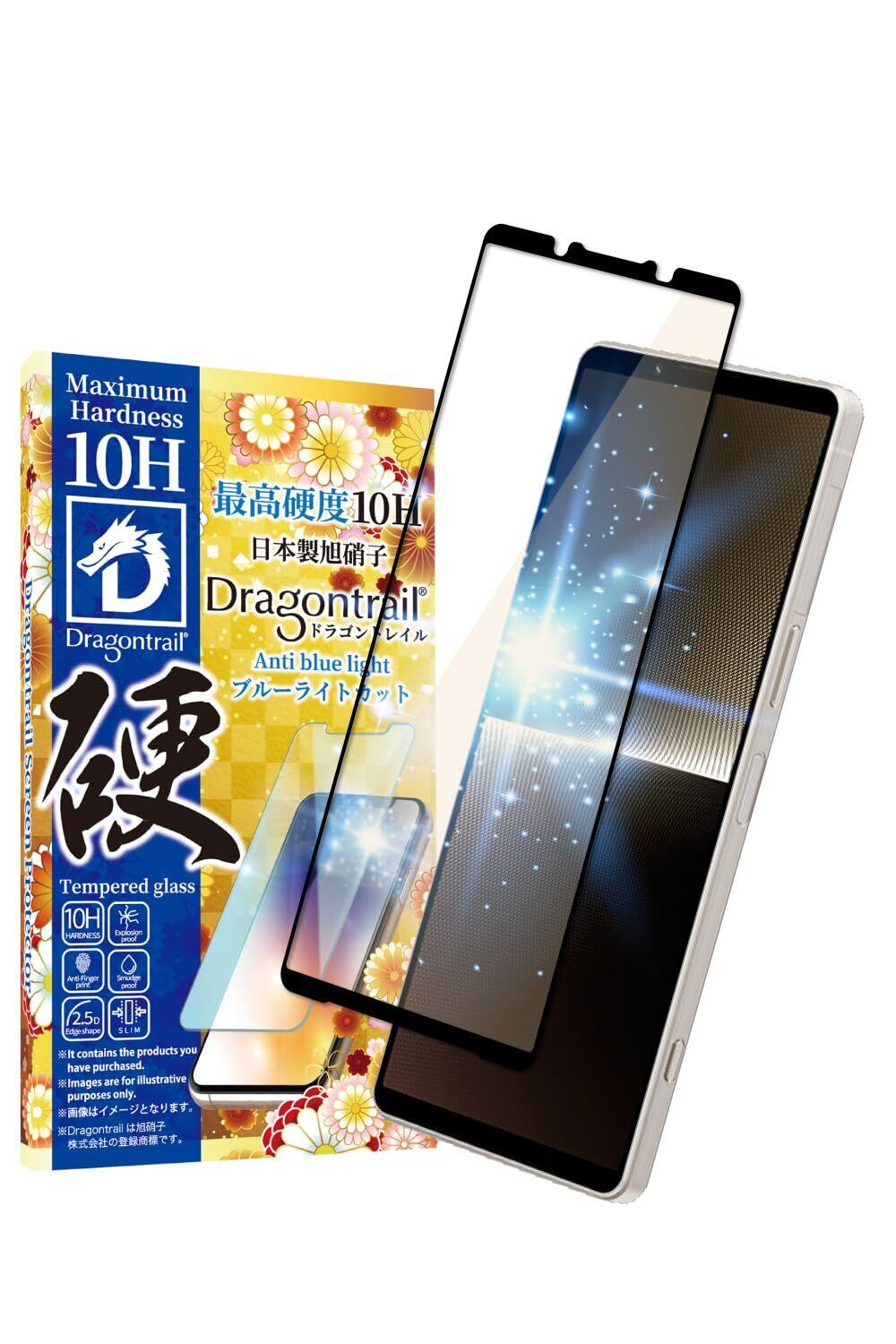 シズカウィル Xperia 1 v 用 ガラスフィルム 強化ガラス 保護フィルム フィルム 10Hドラゴントレイル ブルーライトカット SO-51D 用 SOG10 用 液晶保護フィルム 黒縁 1枚入り