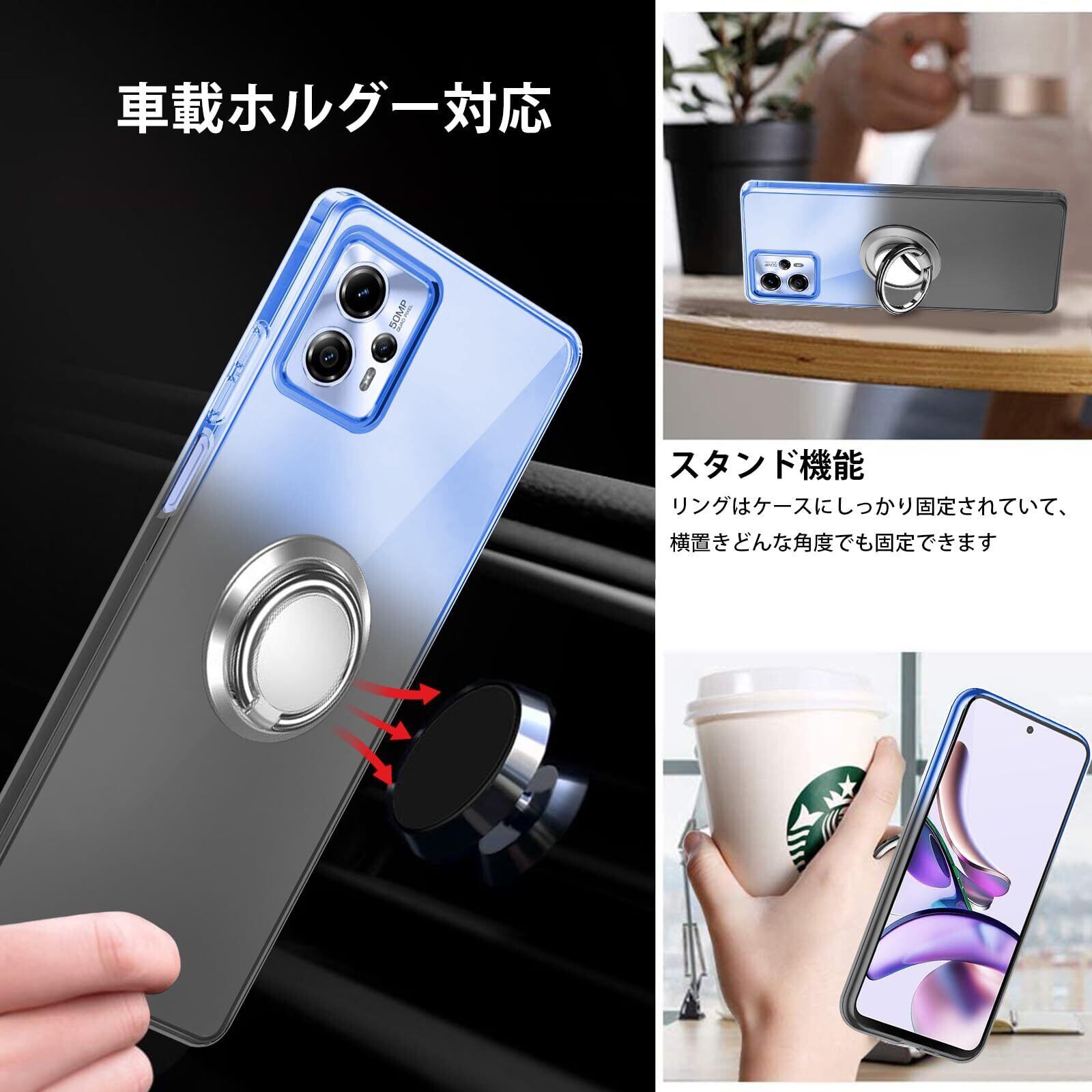 Moto G13/G23 用 ケース リング 透明 tpu 薄型 軽量 シリコン グラデーション色 ケース 耐衝撃 指紋防止 車載ホルダー対応 防塵 一体型 人気 携帯カバー 全面保護カバー ブルーブラック