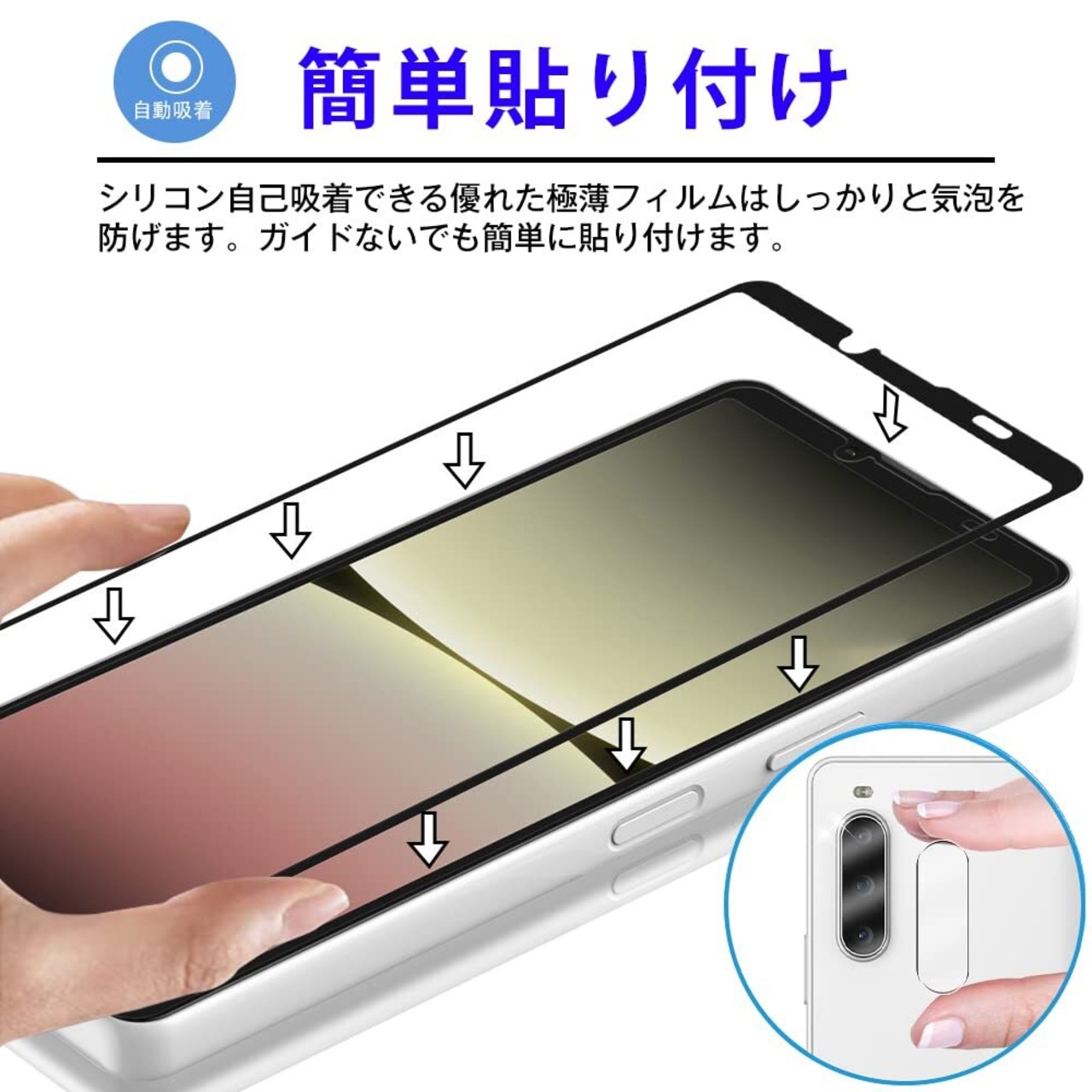 【対応機種&包装内容】 Xperia10V 専用ガラスフィルム。強化ガラスフィルム【1枚】+カメラフィルム【1枚】+日本語取扱説明書+貼り付けキット。貼り付けキットは取付けをより容易にすることができ、インストール プロセスで泡を作り出しません、ご安心をご購入ください。