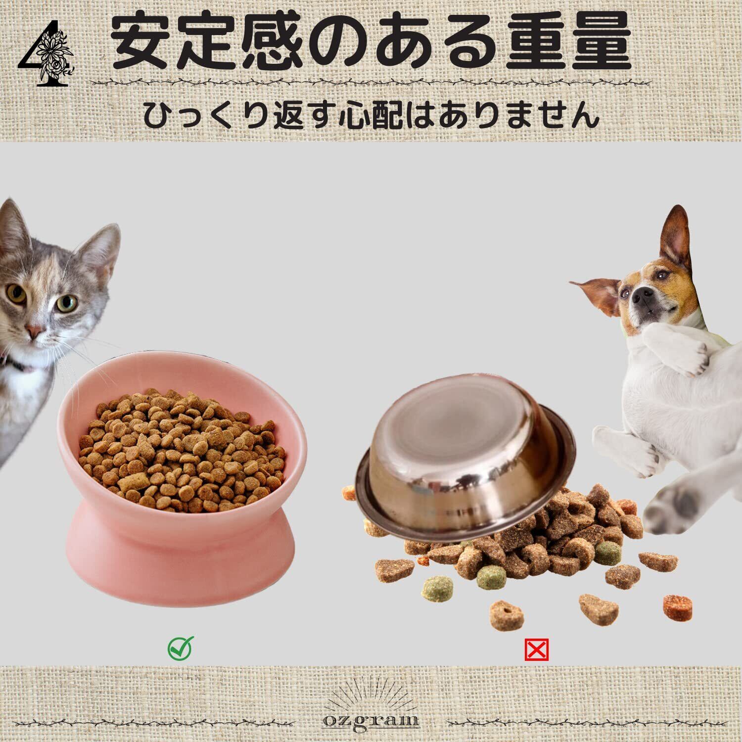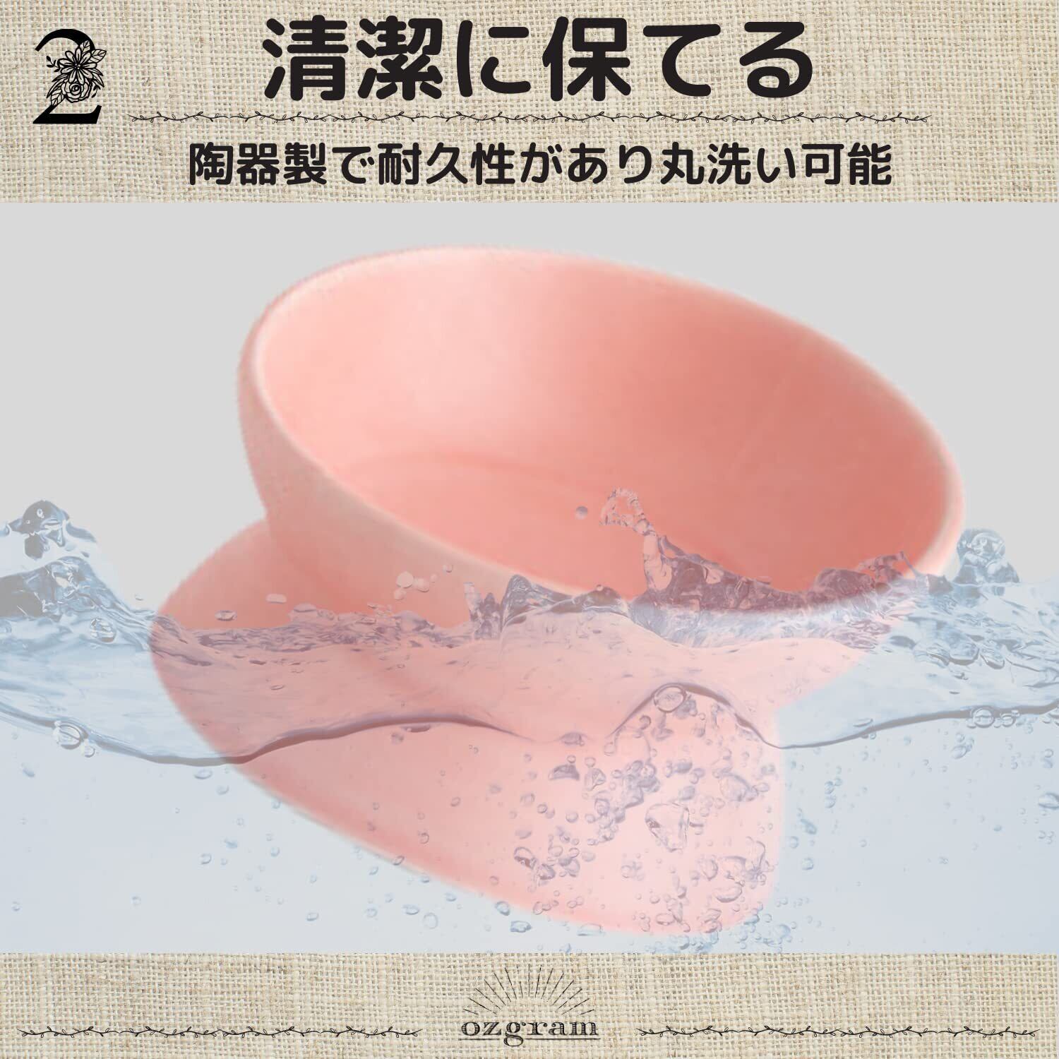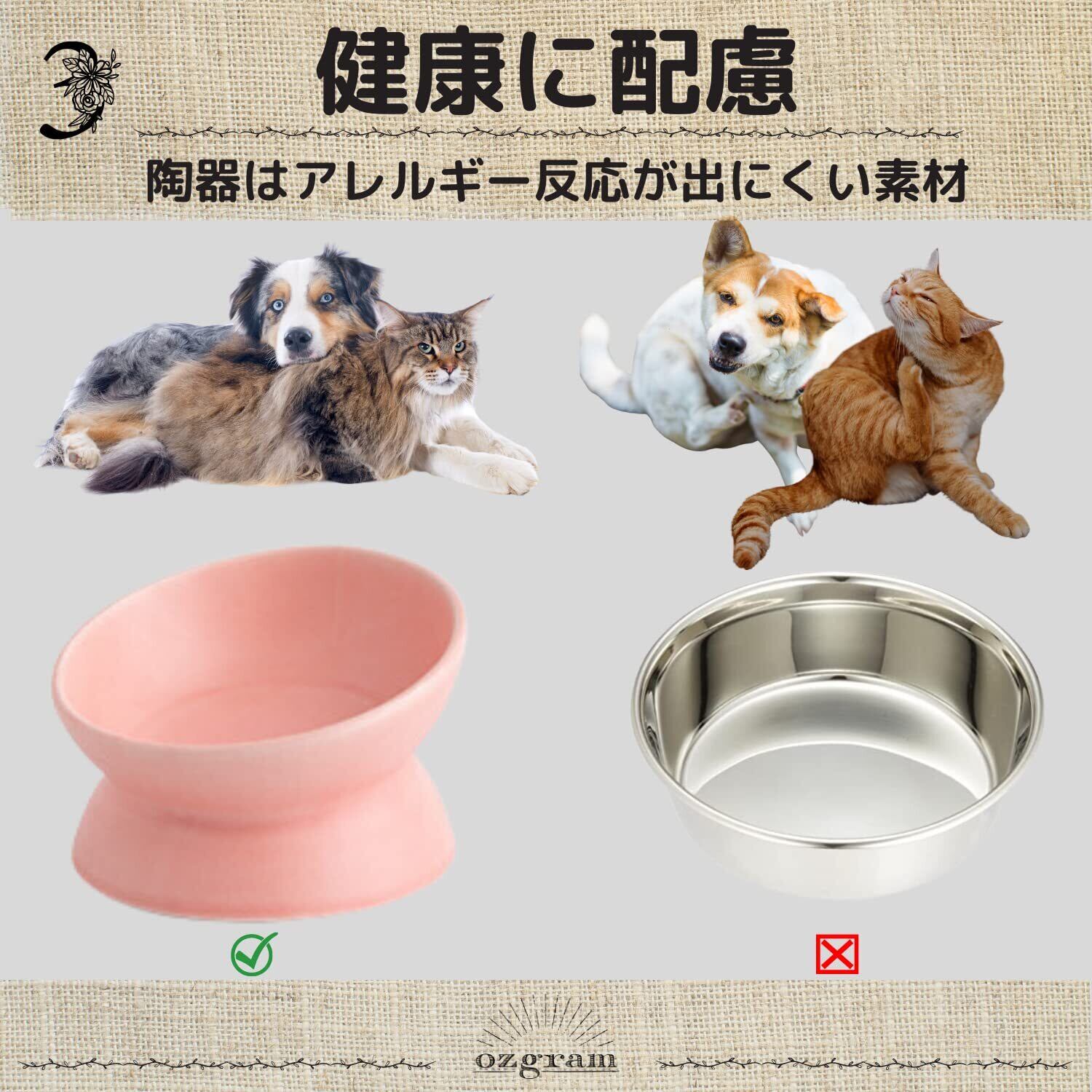 ozgram セラミックボウル ペットボウル 傾斜あり 餌入れ 餌皿 フードボウル ペット 犬 猫 猫用 犬用 猫皿 水入れ 陶器 ピンク (pink)