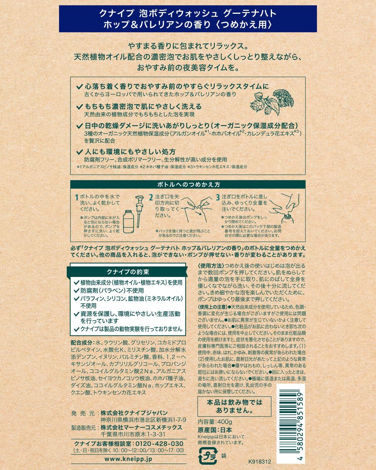 クナイプ(Kneipp) 泡ボディウォッシュグーテナハト ホップ&バレリアンの香り <つめかえ用> 400g