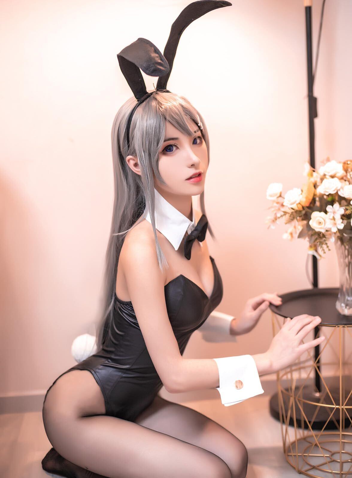 【定番で大人気なスタイル!】 :様々なイベントにてお使い頂ける人気キャラ桜島麻衣の豪華な7点セットでご用意させて頂きました。 ワンポイントの丸い尻尾がとっても可愛らしく、大胆に肌を魅せるバニーガールのスタイルはセクシーな色気をたっぷり漂わせて華やかな存在感を放ってくれてバックスタイルにまでぬかりがありません。