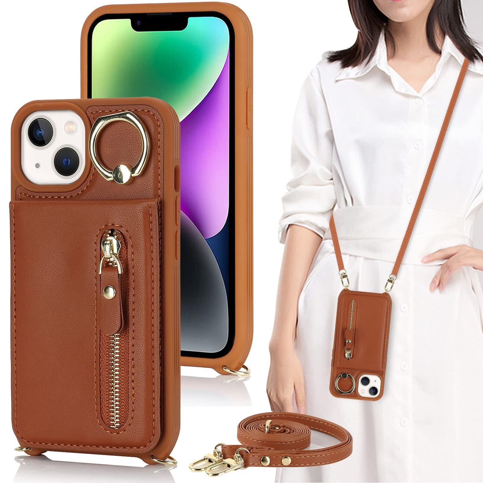 iPhone 14 plus ケース ショルダー リング付きケース ストラップケース 背面フリップ 手帳型 上下開 ショルダー リング付き リング ストラップ ポシェット iPhone14plus いphone14plus iPhone14 plus アイホン14plus アイフォン14 plus ケース 14ぷらす アイホン 14plusケース iPhone 14 plus ケース アイフォン14plus ケース アイフォン 14 プラス カバー アップル アイホン14プラス 携帯ケース 14プラス ポシェットケース 適用 case 【iCoverCase】 リング カードケース カード収納 スナップ式 横置き スタント 肩がけ 首掛け 斜め掛け ファスナー ストラップ付き ショルダーケース カード入れ カバー スマホケース 携帯カバー ブラウン