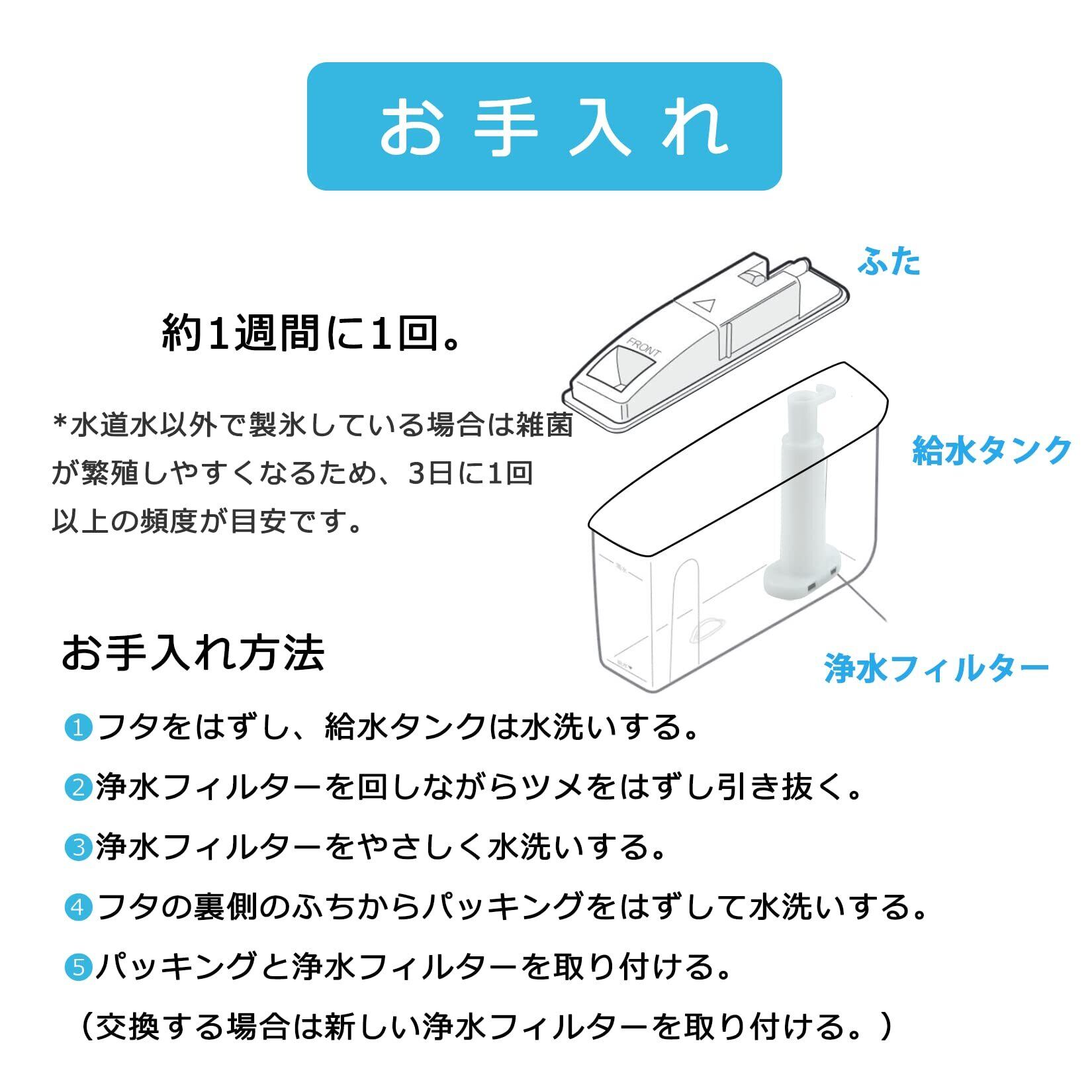 【お手入れ目安】1週間に1回。浄水フィルターに水あかなどが詰まっていると製氷できないことがあります。