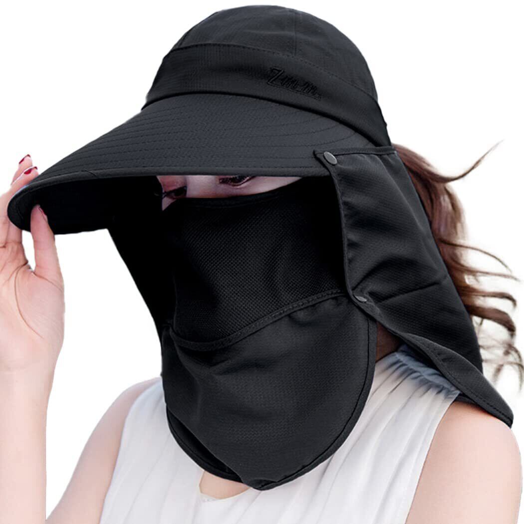 セット内容・1点・360度日除けハット 顔を覆ってもカバーを外さず飲み物が飲めちゃう。 フード付き日よけ帽子 360度 フルカバー マジックテープ 調節可能 紫外線対策グッズ 4way 折りたたみ スポーツ ランニング テニス ガーデニング 農作業