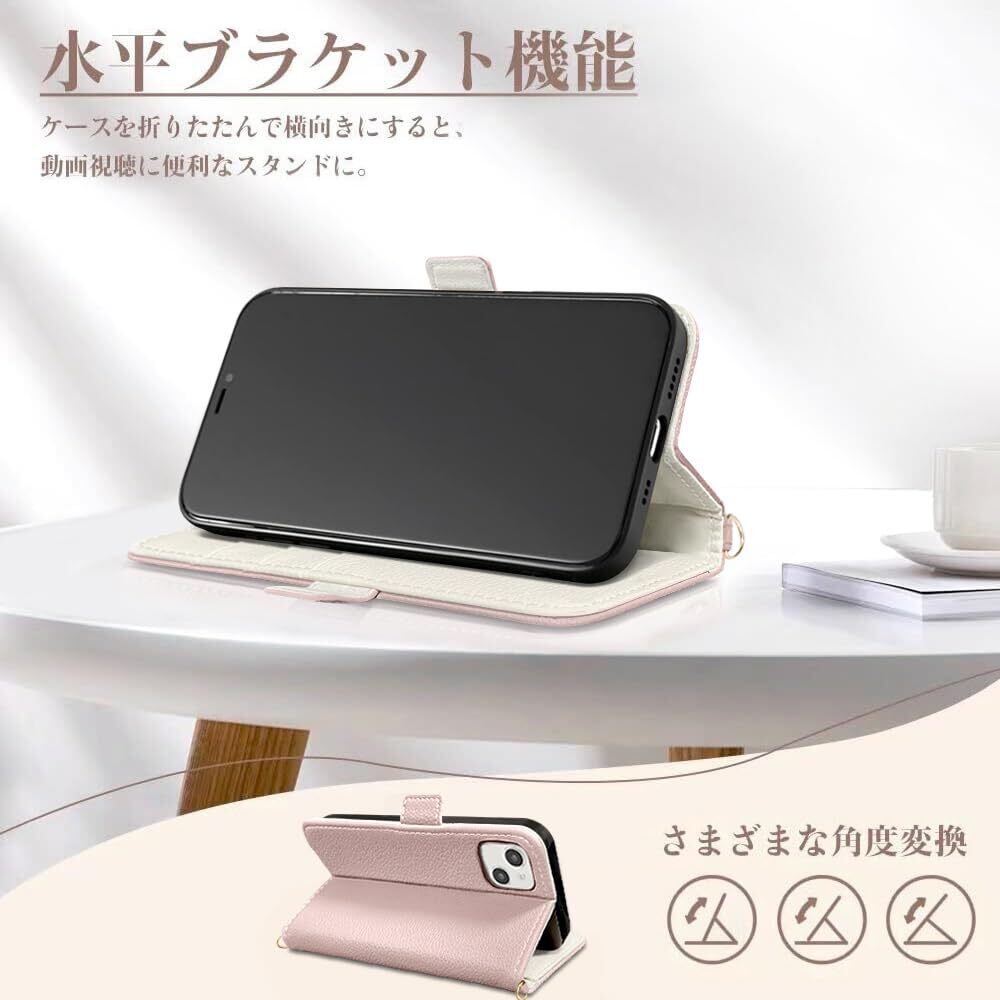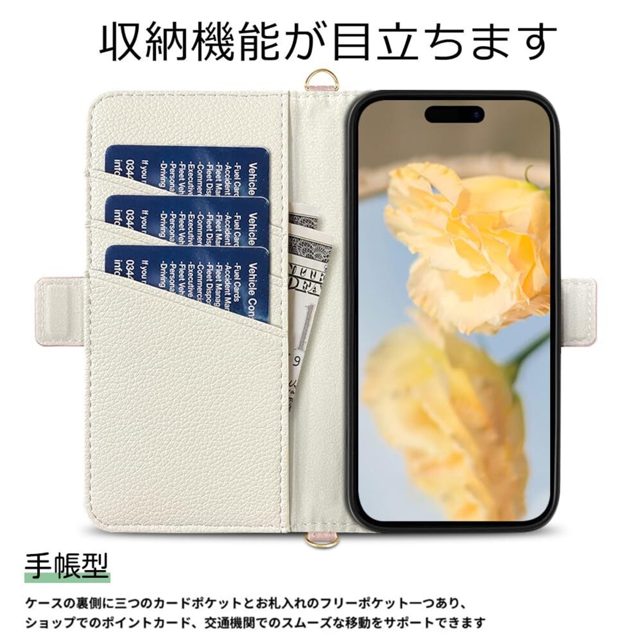 MAGICASE for iPhone15 ケース 手帳型 おしゃれ いphone15 ケース 手帳型 ショルダー アイフォン15 ケース 手帳型 肩掛け スマホケースiphone15 財布型 女性 マグネット式 カード収納 スタンド機能携帯ケースiPhone15 可愛い 高級PUレザー 耐衝撃 擦り傷防止 防塵 軽量 放熱性 全面保護 人気 バイカラー 6.1インチ対応(ピンク メ アイボリー)