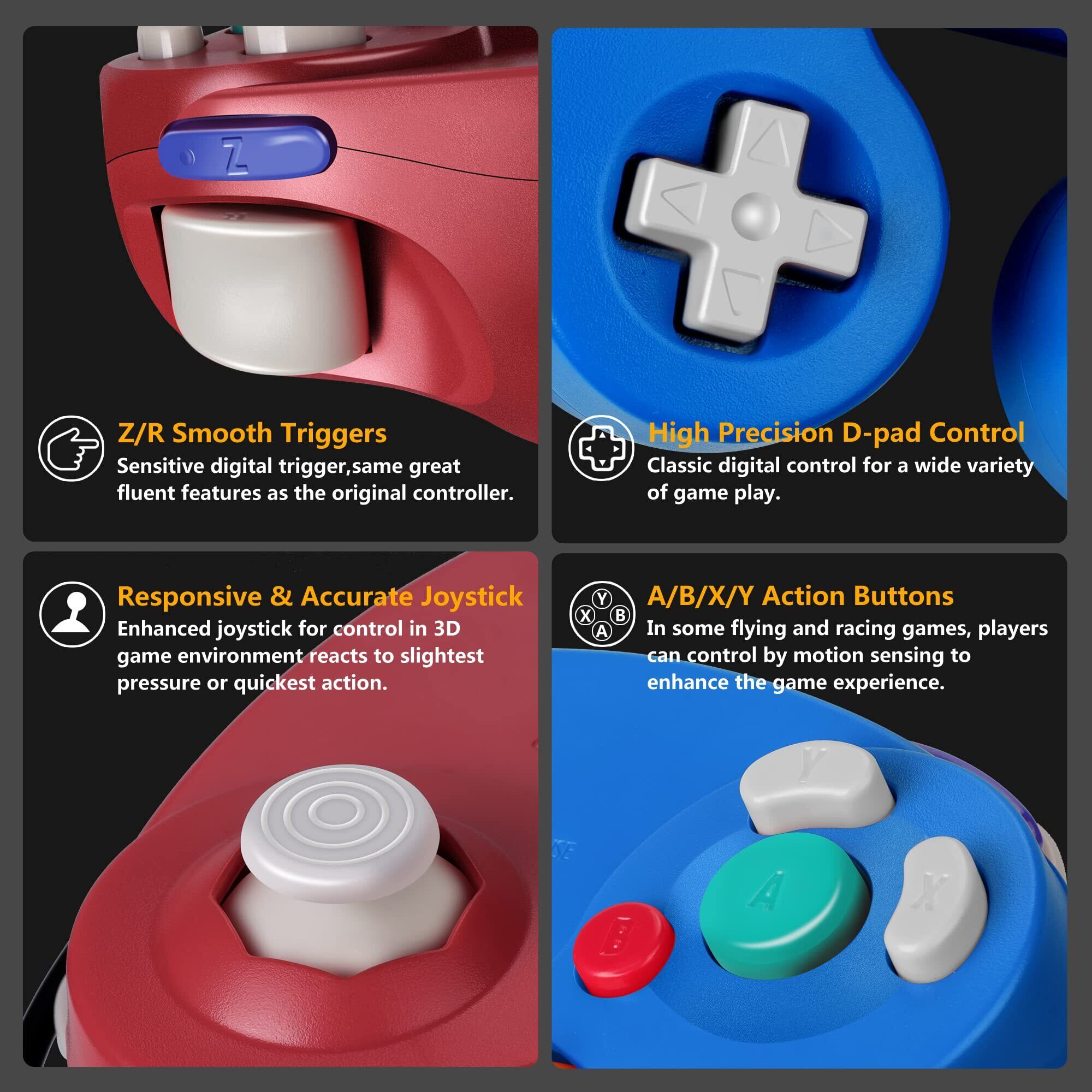 FIOTOK ゲームキューブコントローラー、Wii Nintendo Gamecube用クラシック有線コントローラー(レッド&ブルー)