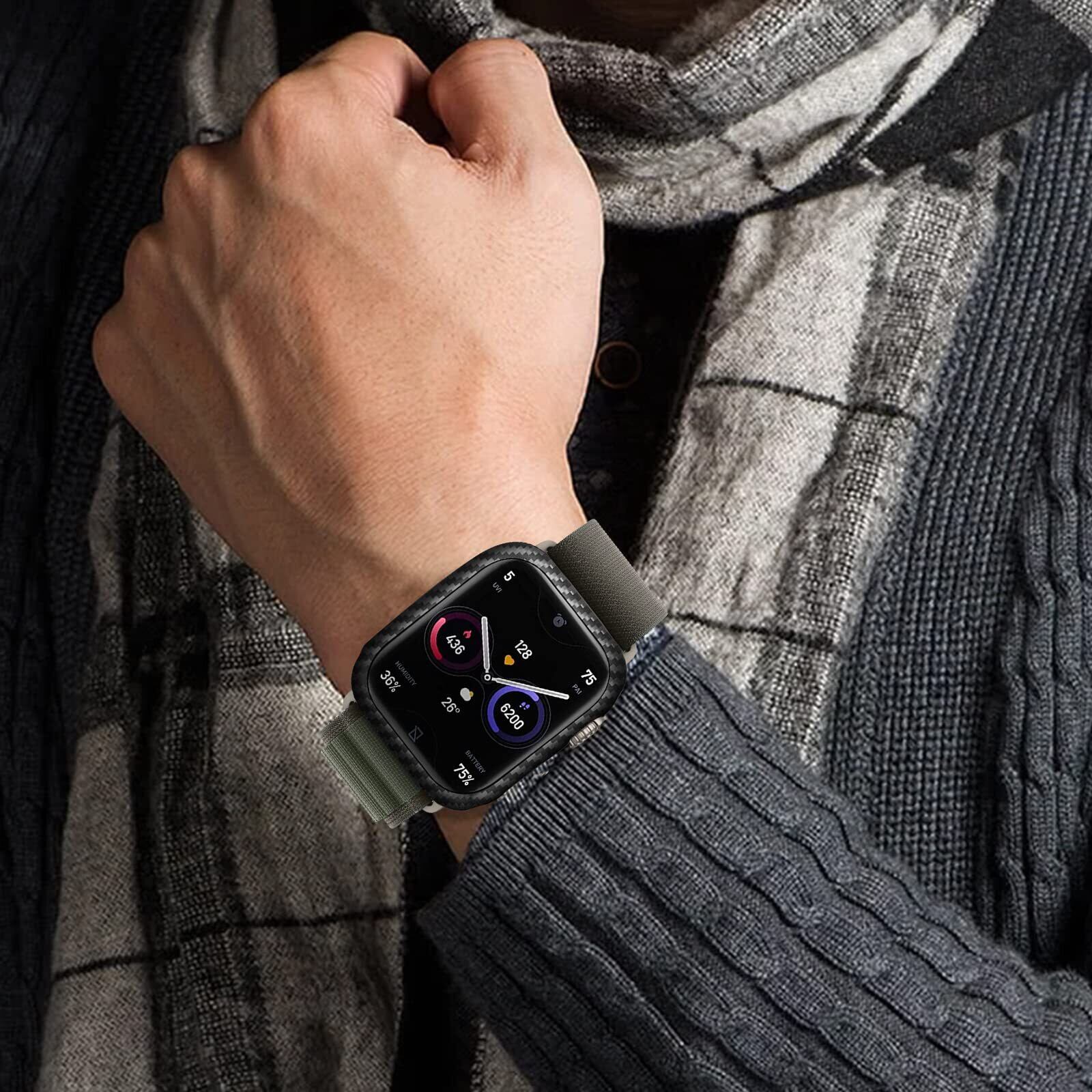 【プレミアム素材】極薄のミリタリーグレードの600Dアラミド繊維保護ケース、細かい質感が魅力的な外観を提供します。多数の落下防止および衝突防止テスト実験の後、Apple iwatchを包括的に保護します。