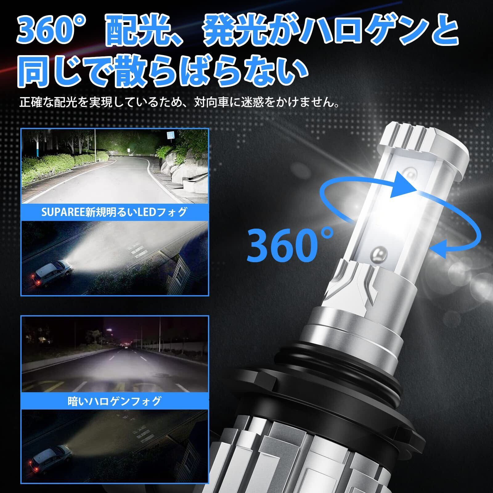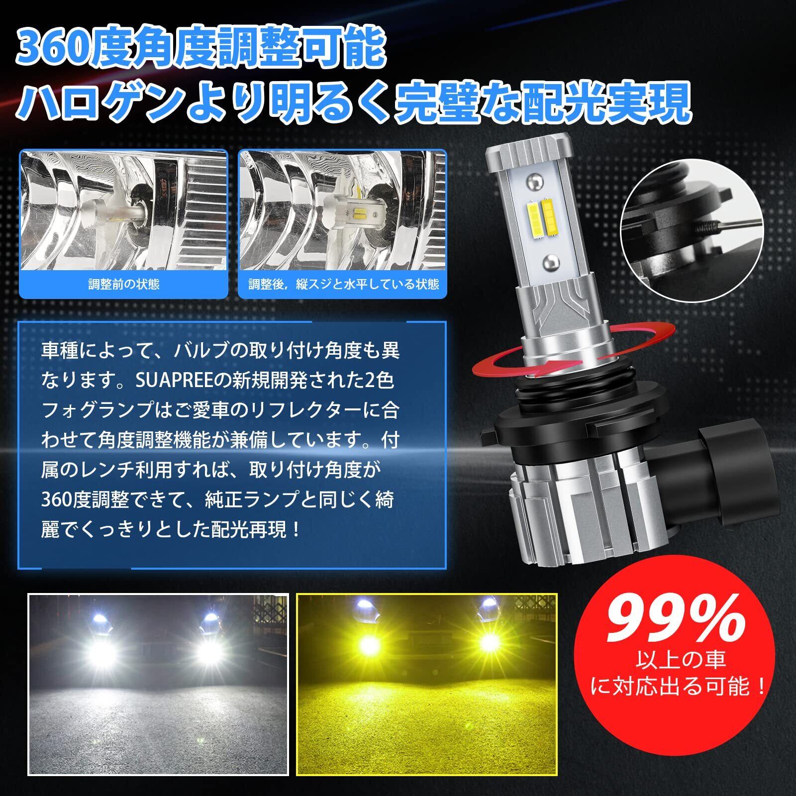 【2023年爆光モデル】SUPAREE HB4 LED フォグ 2色切り替え 爆光 HB3 LED フォグランプ 12000lm 20W*2 2重防水防結露 角度調整可能 車検対応 DC12V ホワイト/イエロー デフォルトホワイト 2個セット