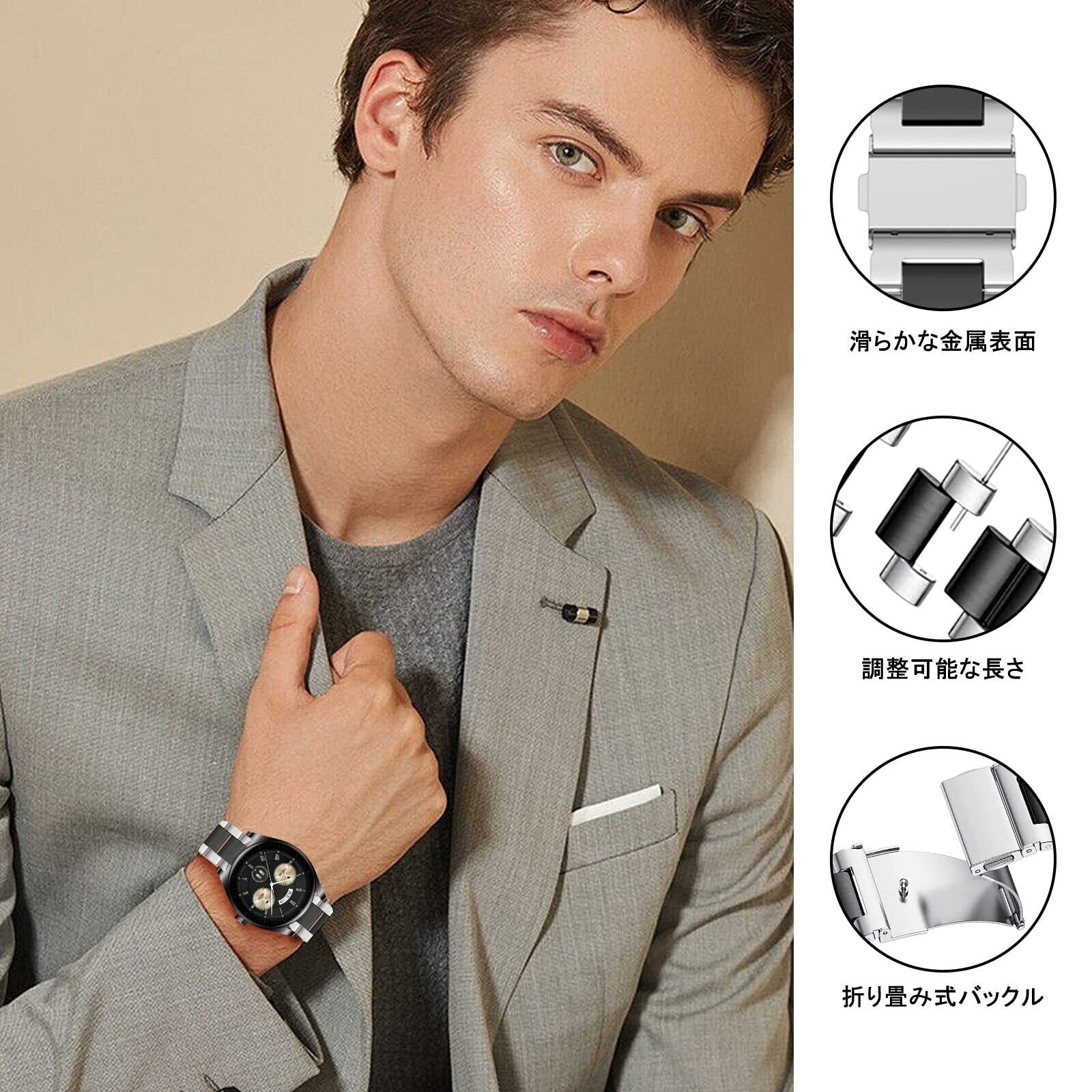 【ジネススタイル】上品な光沢で質感をアップし、重量感と高級感もあり、落ち着いた印象はスーツスタイルにもぴったりで、人々にファッショナブルでエレガントな印象を与えますよ。ショッピング、ビジネス、レジャー、アポイントメント、パーティー様々なシーンに適しており。【バタフライバックル】このストラップはステンレス製のバタフライバックルを使用しており、安全で着脱が簡単です。ボタンを押すと、時計を1秒で着脱でき、時計を装着しても留め金がしっかり閉まります