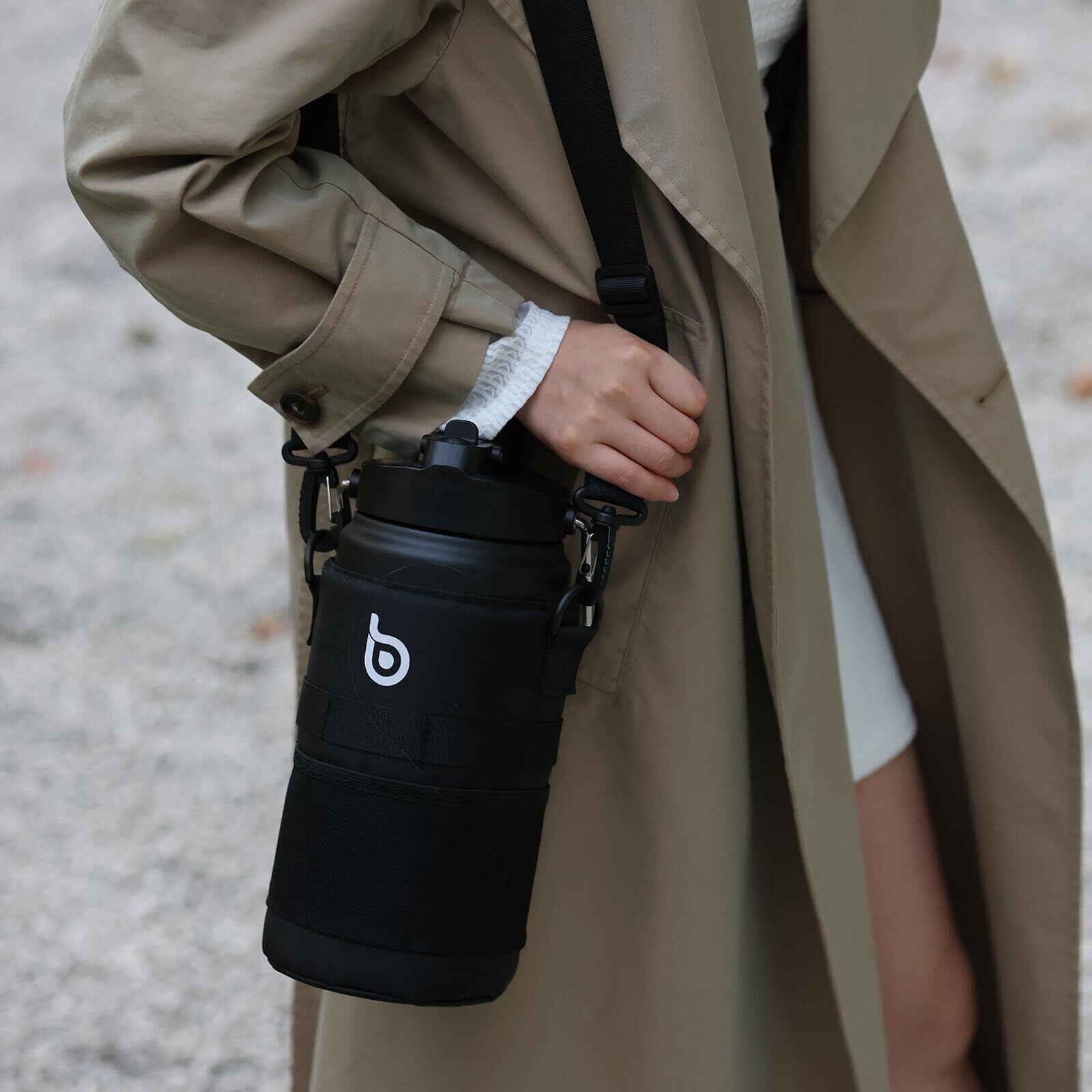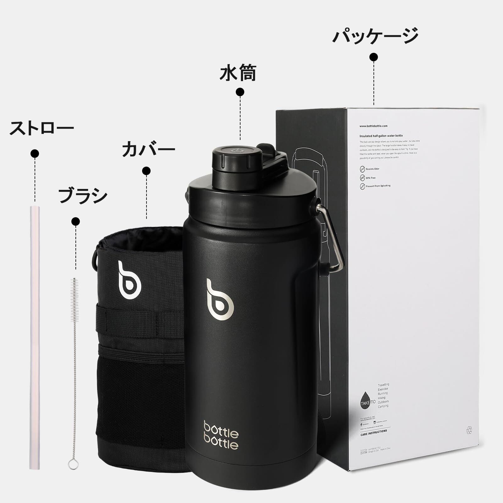 BOTTLE BOTTLE ジャグ 2リットル 水筒 大容量 2L ステンレス 真空断熱 保温保冷 ストロー付き 持ち運び 水筒カバー付き 直飲み アウトドア スポーツ キャンプ ブラック black