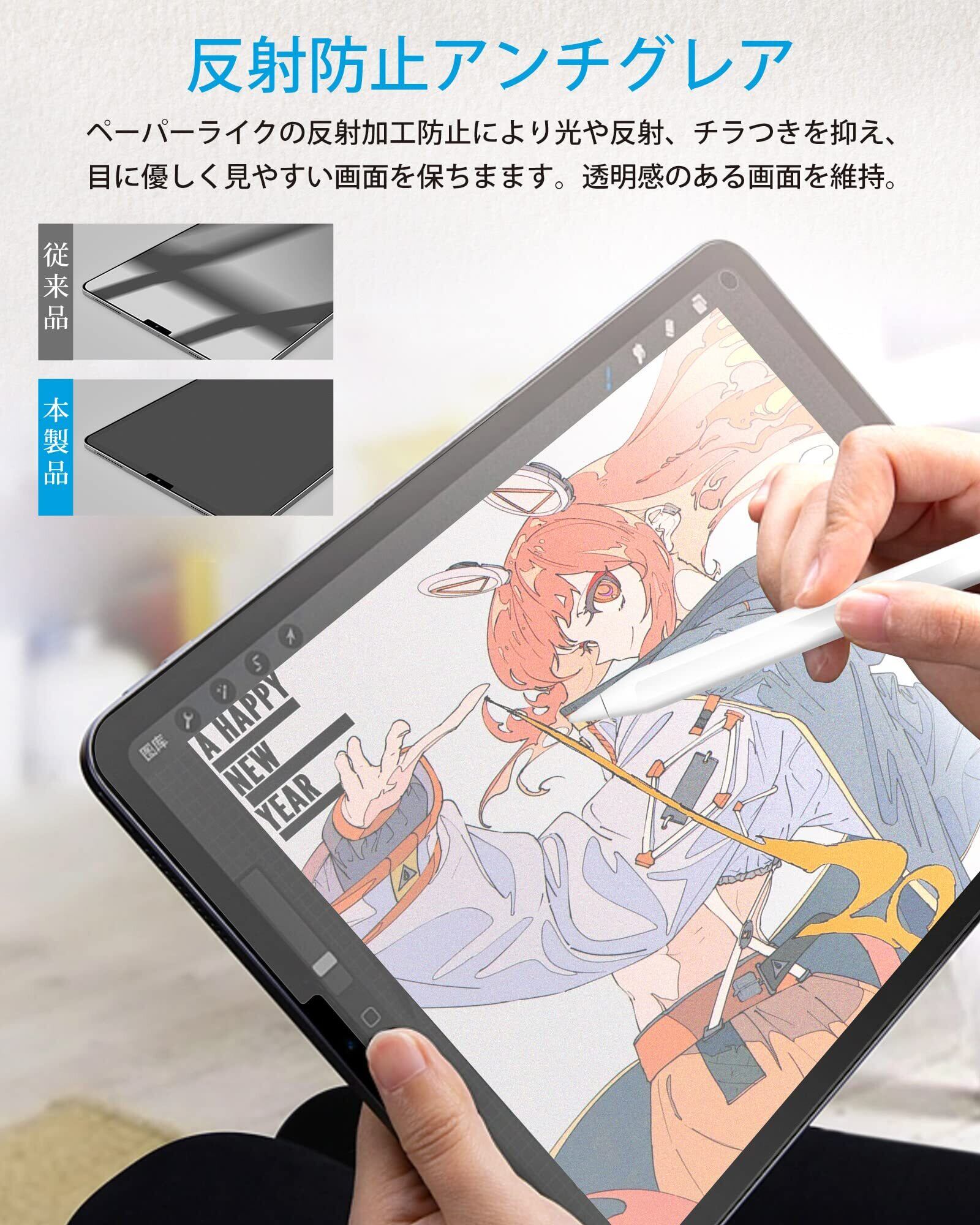 【反射防止・指紋防止】ペーパーライクのアンチグレア加工防止、太陽や照明の反射を抑え、光の映り込みを防ぎため、アウトドアで端末の使用に影響が有りません、目に優しく見やすい画面を保ちます。撥油加工をしており、指紋や汚れが付きにくくになり、付着しても簡単に拭き取れます。常に美しい画面と滑らかでよい操作が得られます。