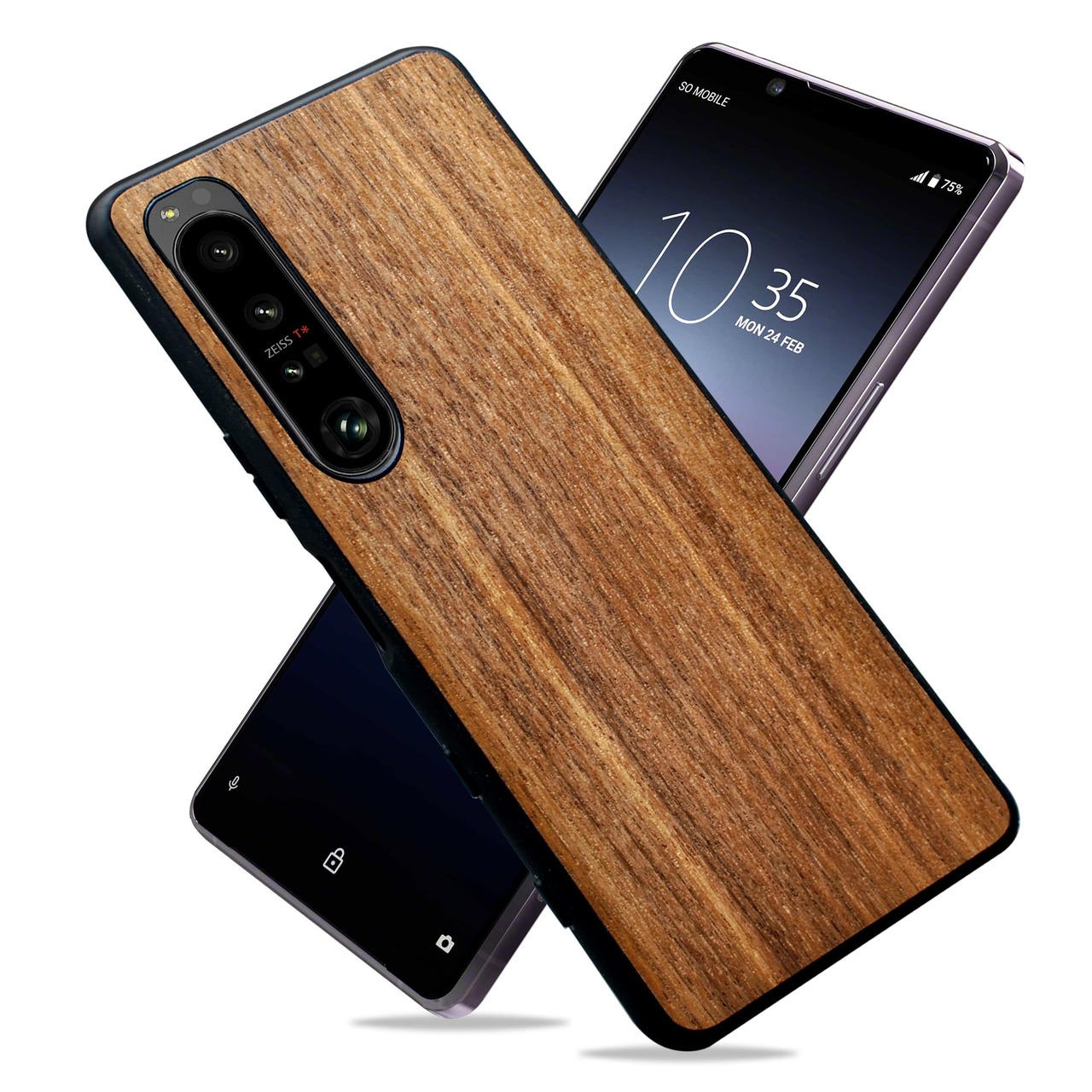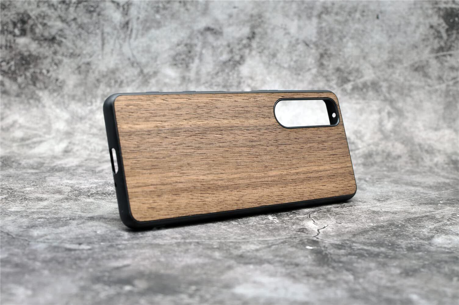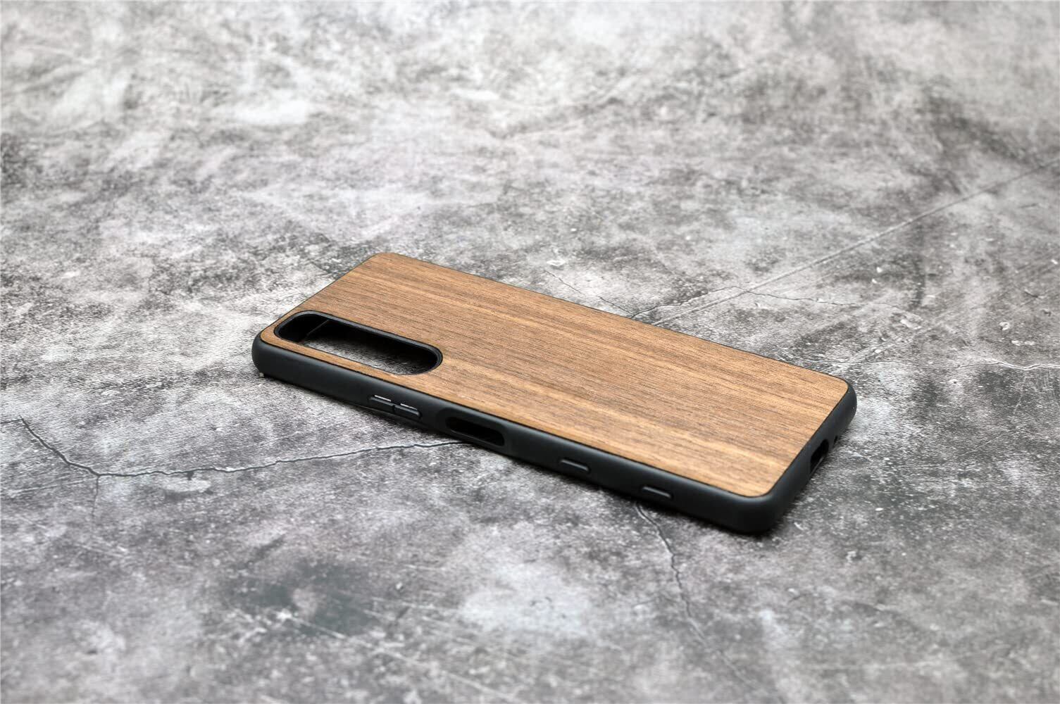MQman Xperia1v SO-51D SOG10 ケース 木製カバー 胡桃の木 原木 素材 エクスペリア天然木 耐衝撃 ソフト クルミ ワイヤレス充電対応 (Xperia 1 V)
