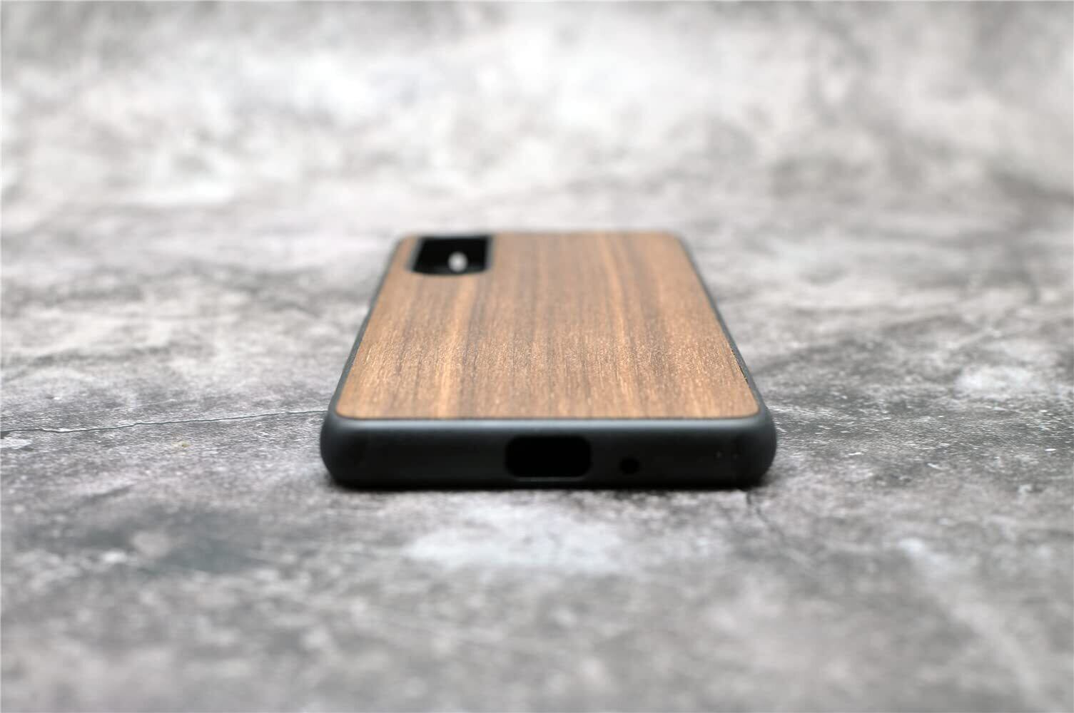 商品素材:胡桃(クルミ)の木背面、TPUフレーム、ストラップホール。天然木と柔軟のTPUの組み合わせです。