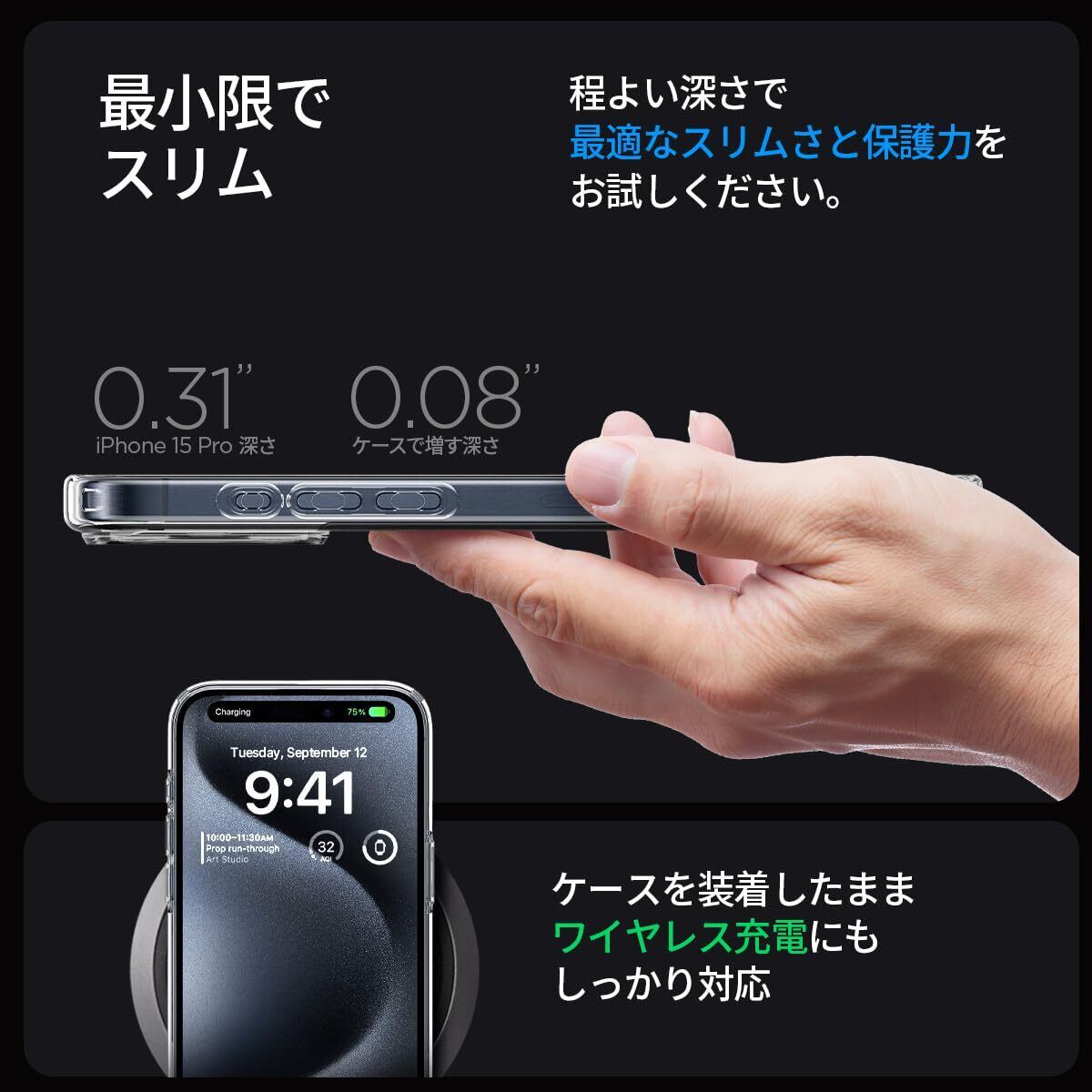 Spigen 【創業18年の技術力】 iPhone 15 Pro ケース クリア 耐衝撃 米軍MIL規格取得 ストラップホール 黄変抑制 透明 TPU バンパーケース 2重構造 擦り傷防止 ワイヤレス充電対応 ウルトラ・ハイブリッド ACS06707 (クリスタル・クリア)