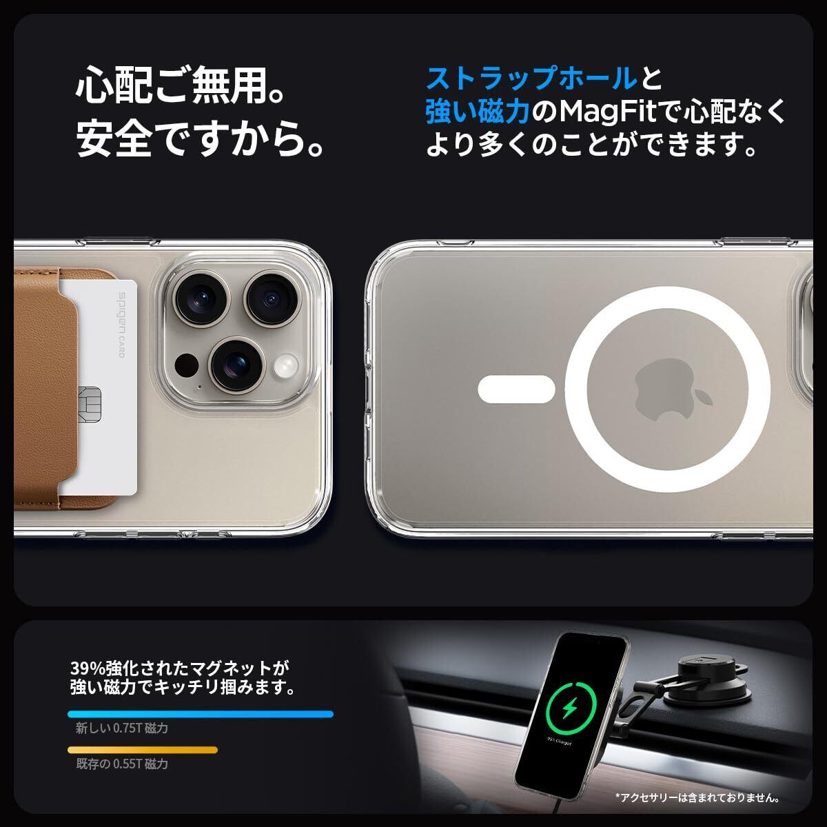 Spigen 【創業18年の技術力】 iPhone 15 Pro ケース MagSafe クリア 耐衝撃 米軍MIL規格取得 ストラップホール 黄変抑制 透明 ストラップホール マグネット搭載 2重構造 レンズ保護 擦り傷防止 MagSafe ワイヤレス充電対応 ウルトラ・ハイブリッド マグフィット ACS06715 (ホワイト)