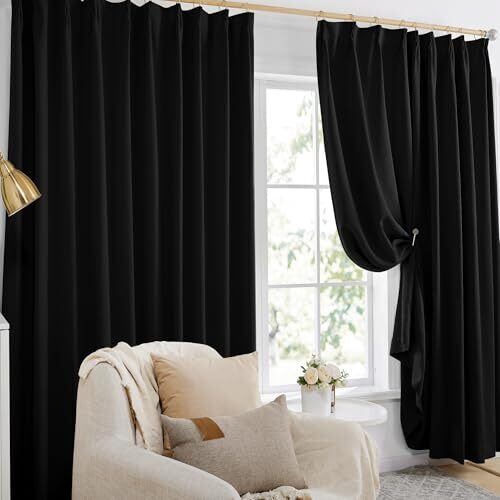 Deconovo 遮光カーテン ドレープカーテン 無地 幅130cm丈200cm ブラック 2枚入 1級遮光 おしゃれ 仕切り 幅広い 形状記憶加工 北欧 UVカット 断熱 防寒 節電対策 昼夜目隠し